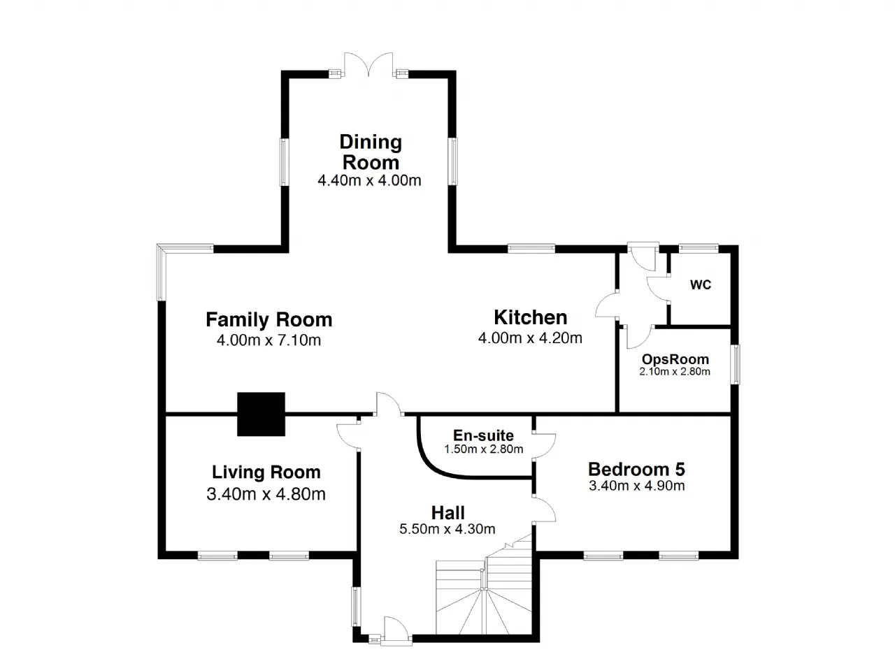Bedroom 5 / Study 4.85m x 3.35m Bright room with dual aspect windows. Tv & Phone points.