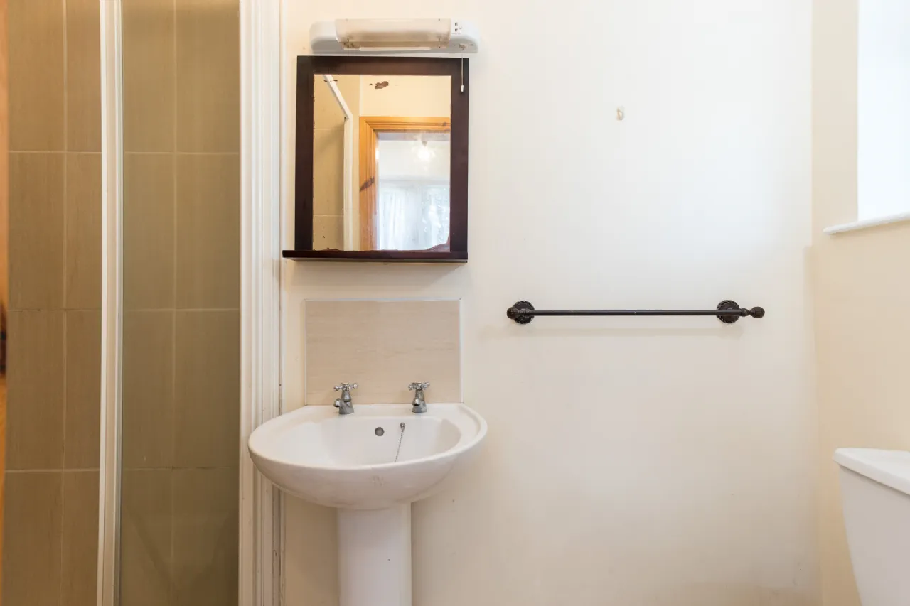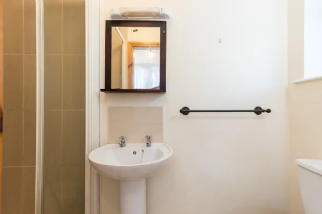 Guest W.C. 0.88m x 2.44m tile flooring and shower, shower, WC, wash hand basin