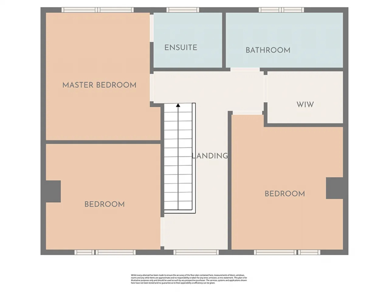 Landing 4.1m x 1.9m and 3.3m x 1.1m timber flooring, attic hatch and front facing window