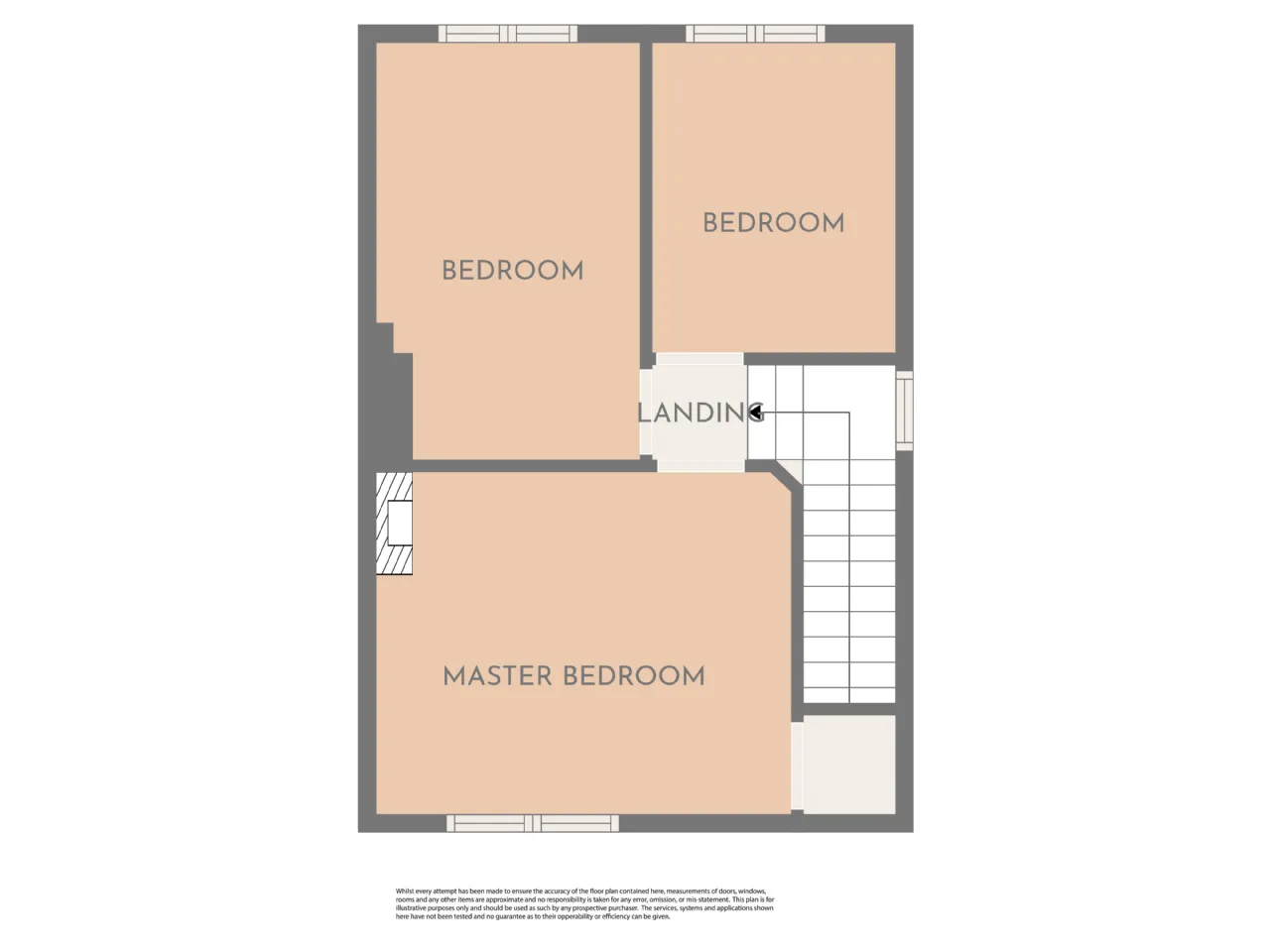 Upstairs landing 2.24m x 0.84m Wooden flooring