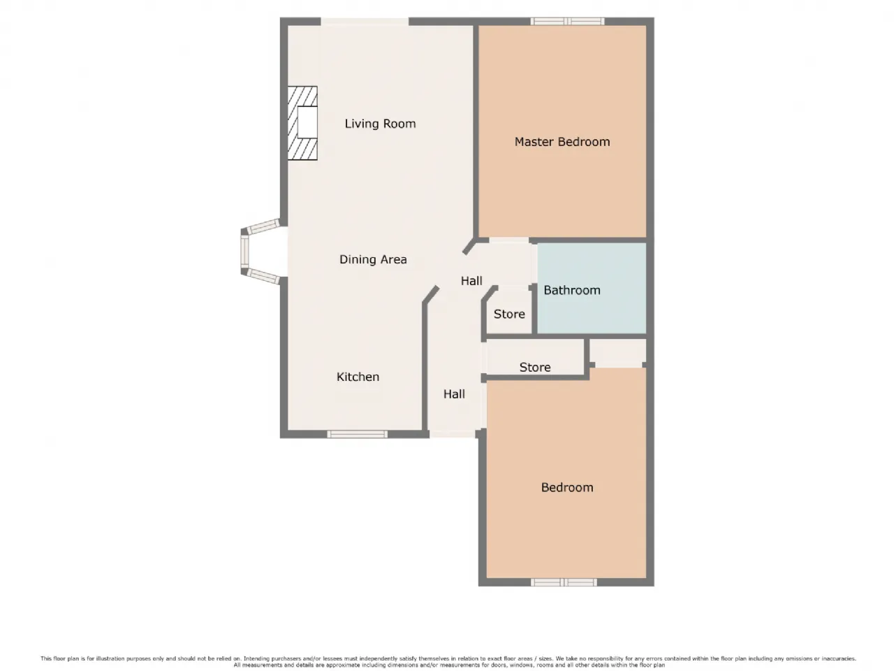 Accommodation includes two double bedrooms, a bathroom and an open plan living - kitchen area with open fireplace and double doors to the rear garden.