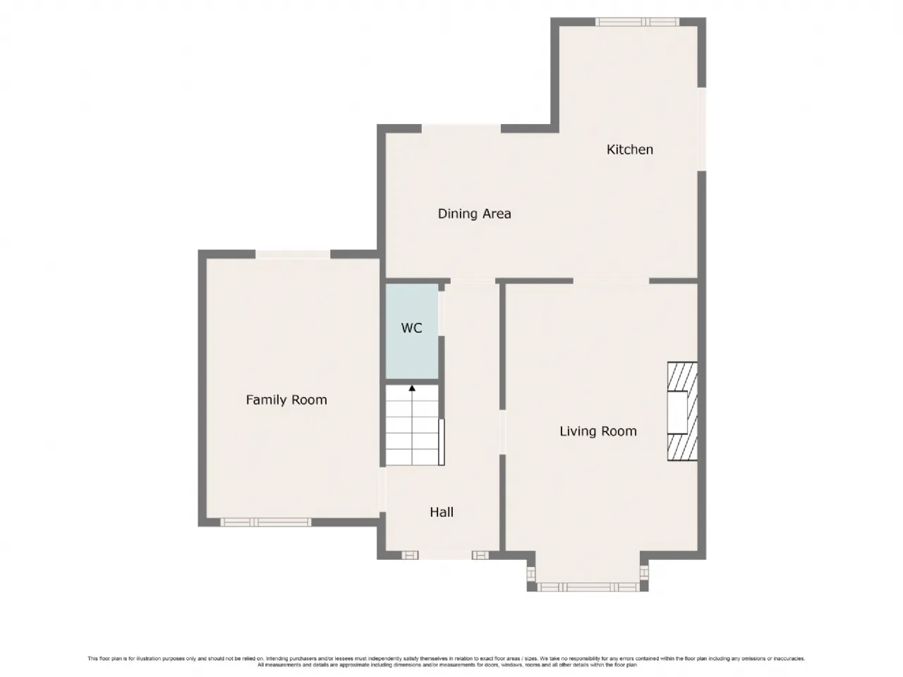 Living Room 4.87m x 3.5m With Bay Window and open fireplace.