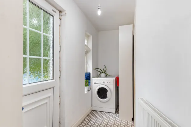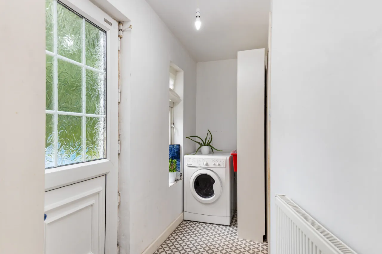 Rear Hall 3.1m x 1.1m with tiled flooring and storage