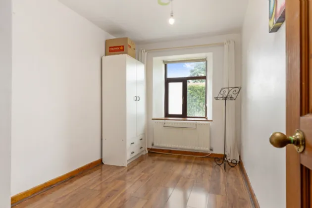 Bedroom 1 3.5m x 2.2m with laminate flooring and front facing bay window