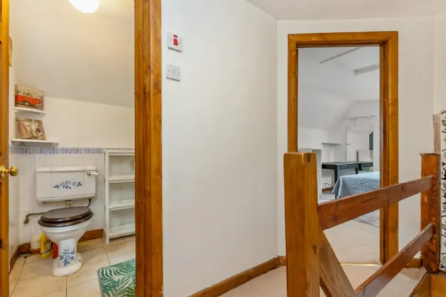 On the ground floor is the kitchen with living/dining area to the rear, bedroom and bathroom. Upstairs is another bedroom and shower room.