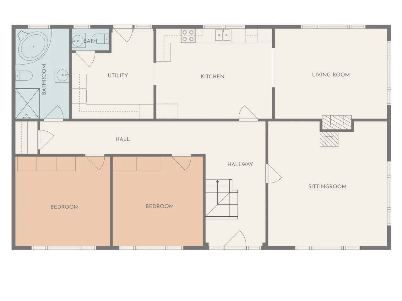 The accommodation over two floors offers on the ground floor, living room, kitchen dining room, utility, guest wc and not one but two bedrooms!