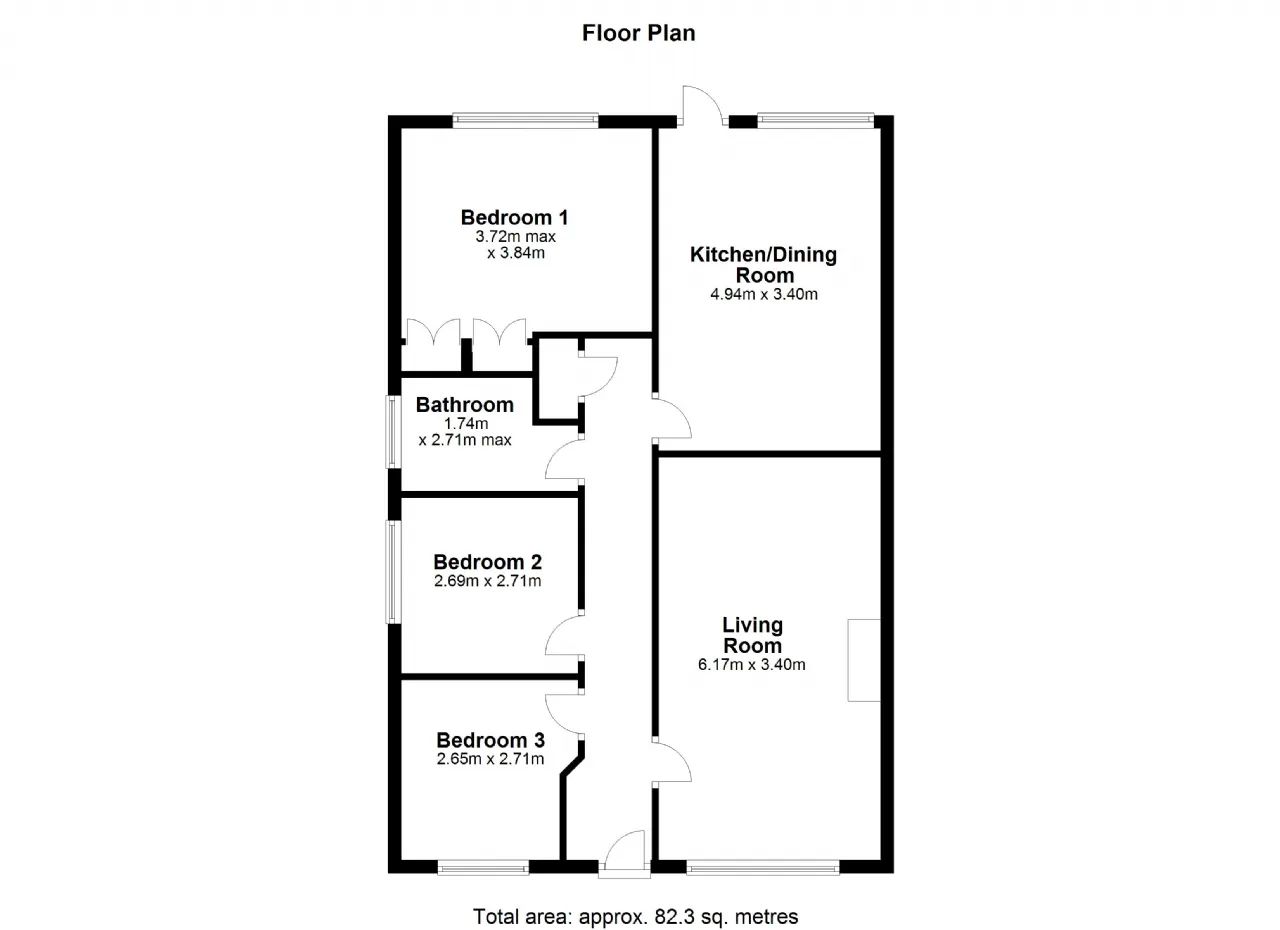 Living Room The large living room is bright and spacious, with an open fire with brick surround. Fully carpeted, there are views to the front and a neutral decor.