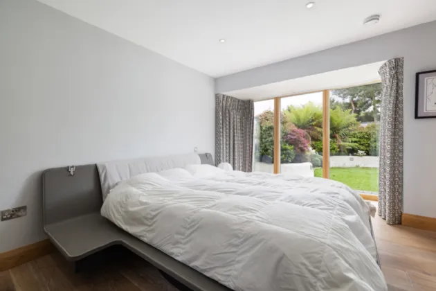 Bedroom 1 5.05m x 2.90m Impressive master bedroom featuring floor to ceiling windows allowing for plenty of natural light, spotlights and engineered wood flooring.