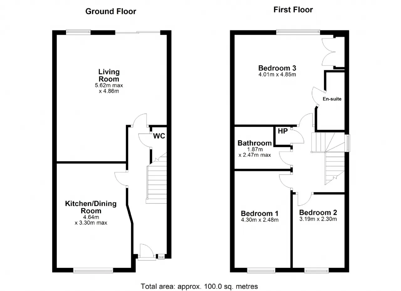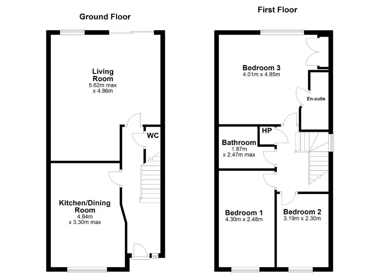 Bedroom 1 4.30m x 2.48m Double room to the front of the property with lovely distant views of the hills. Carpet on floor. Fitted wardrobes.