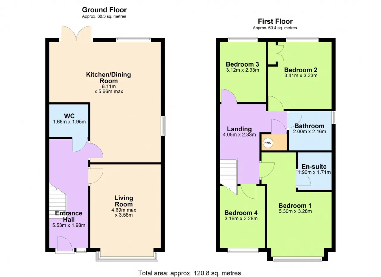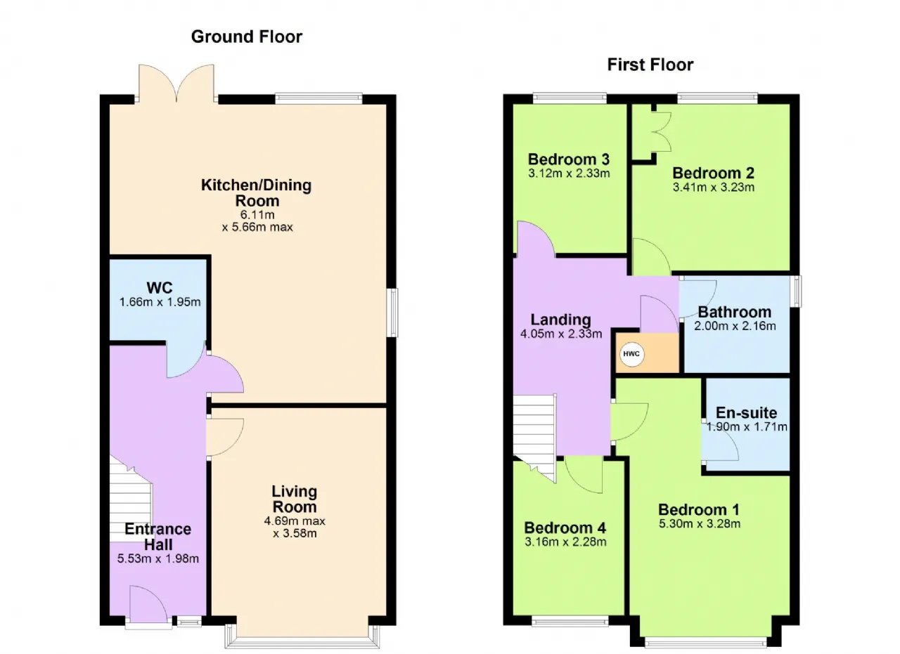 Upstairs, the home features four spacious bedrooms, including a luxurious master with ensuite. The family bathroom is thoughtfully designed with both a bath and shower. The landing provides access to a partly floored attic, ideal for extra storage.