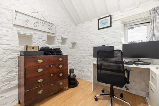 Located close to Wicklow Town and benefitting from an extensive 10.1 acres, there is also another building within the grounds which was an original coach house. This could be renovated to provide an additional dwelling if desired, as there are already electricity and plumbing to the property. The land is gently sloping with a pretty stream running thought the lower fields.