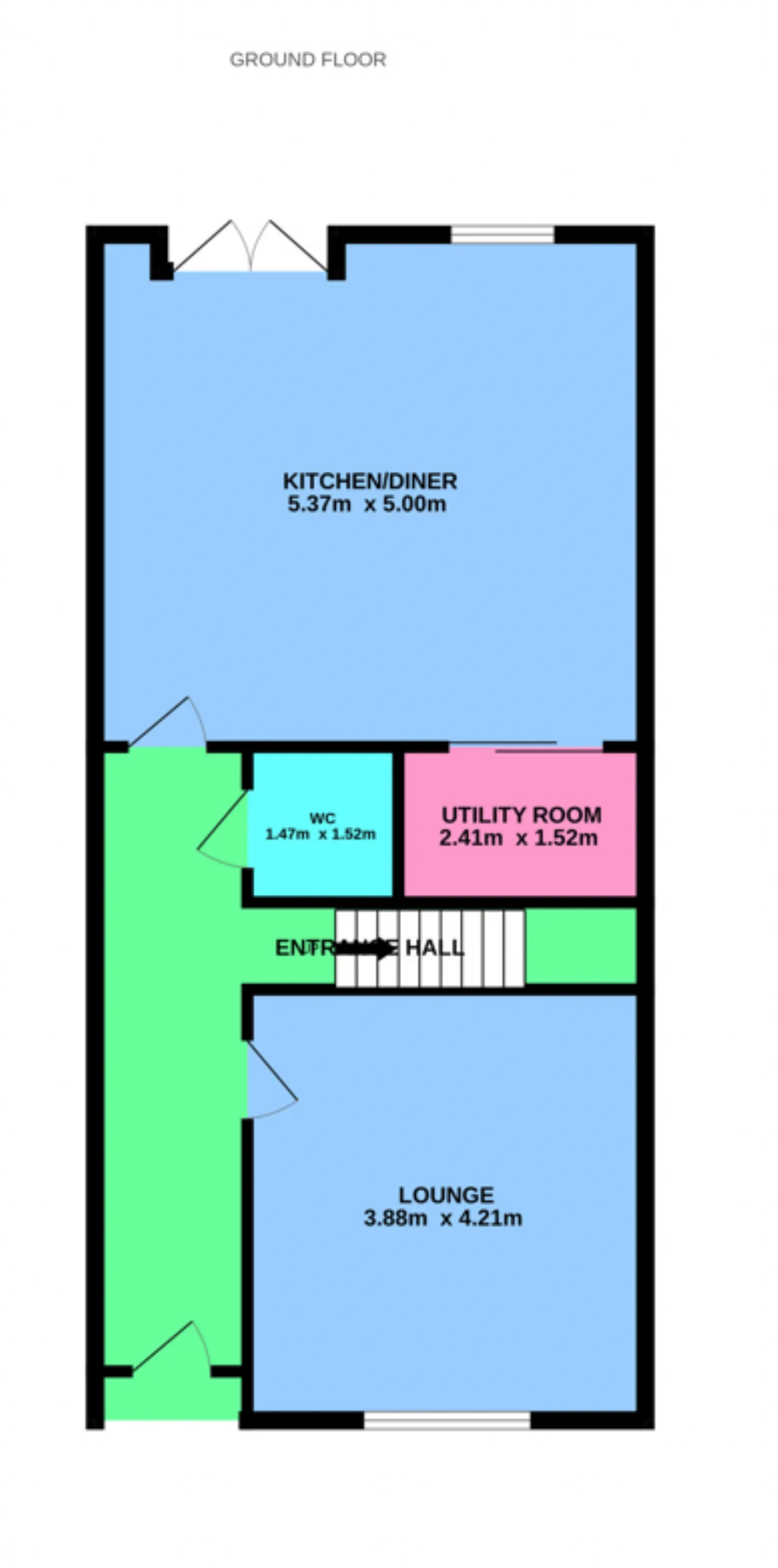 Lounge 3.88m x 4.21m Comfortable and relaxing room to front of the property. Carpeted flooring and central lighting.