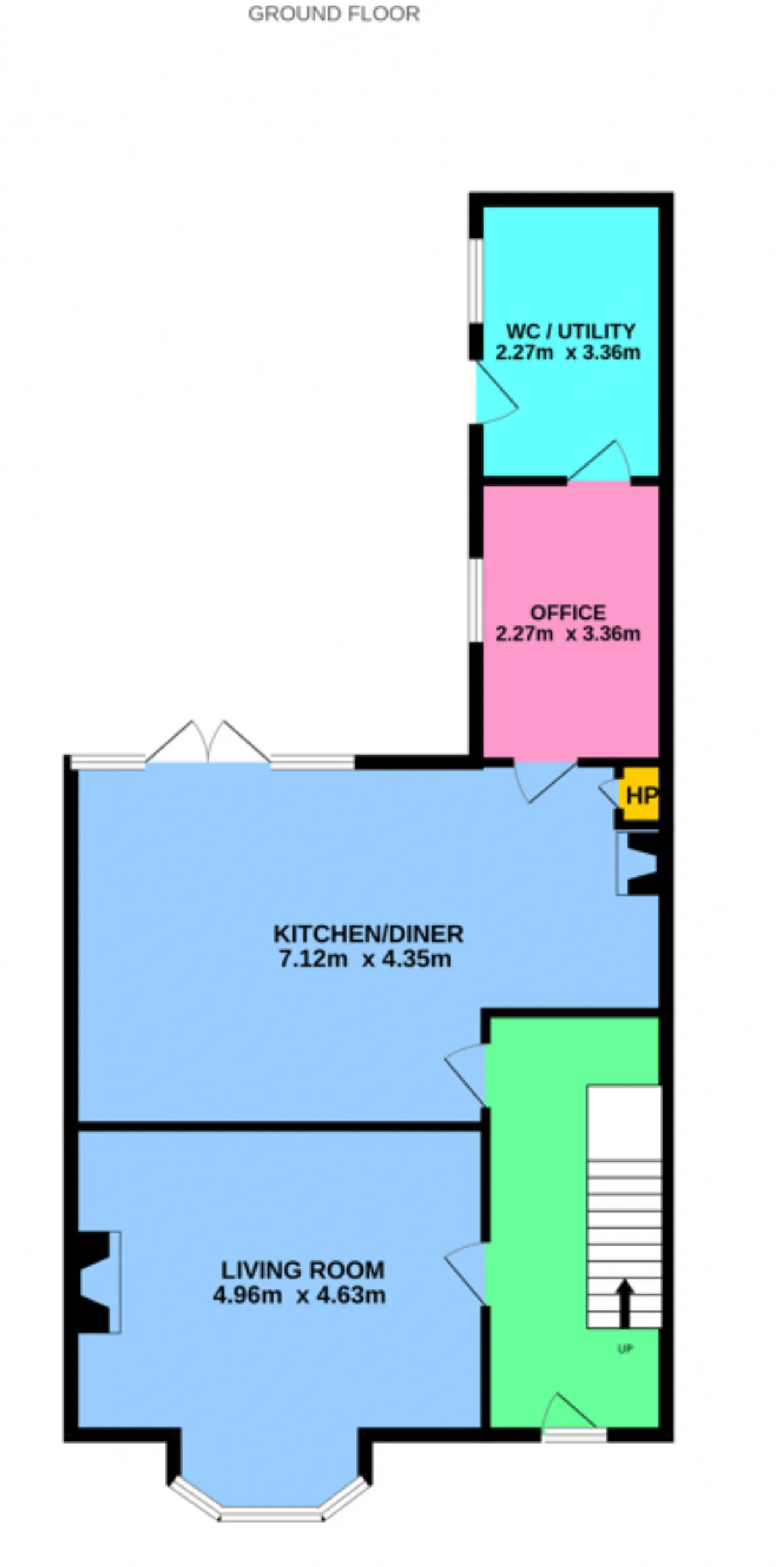Office 2.27m x 3.36m Window with views of rear garden. Carpeted flooring (newly laid). Door to utility.