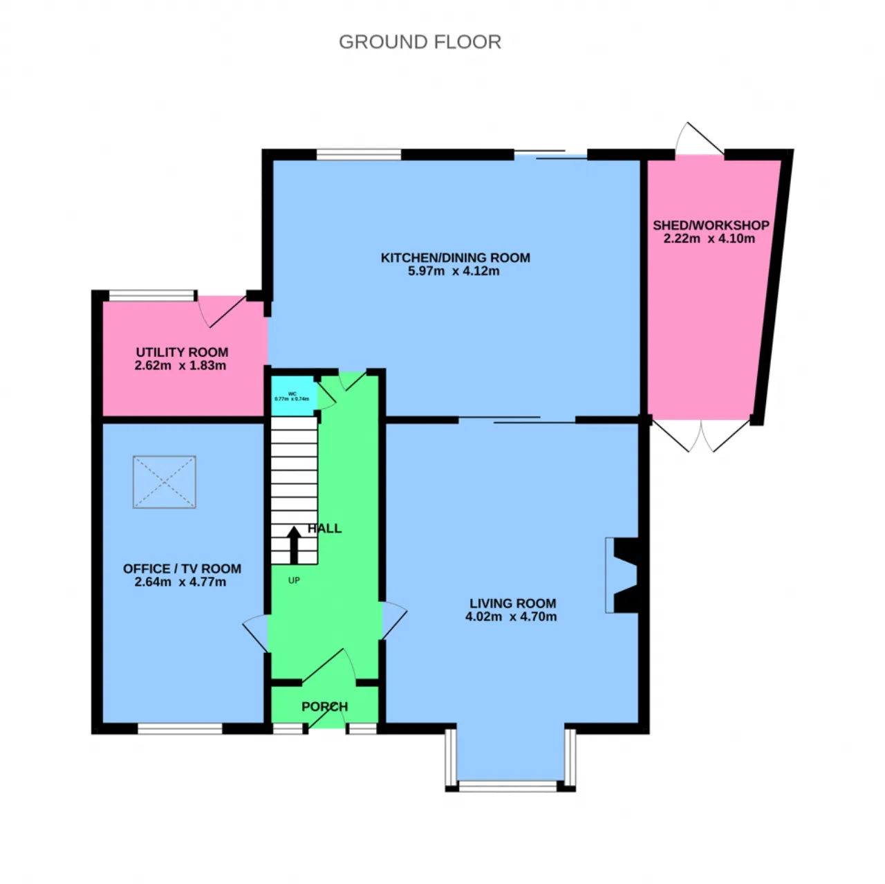 The spacious and light filled accommodation which measures 131sqm/1,410sq.ft. comprises of a very inviting entrance hall with guest WC under the staircase; to the left there is a nice multi-purpose room which is ideal for use as a TV room/playroom or home office with vaulted ceiling that provides lots of natural light; on the other side of the hallway there is an elegantly proportioned and presented front living room with a feature multi fuel stove and bay window; pocket doors lead through into the open plan kitchen and dining room which has double doors leading out onto the patio and garden; off the kitchen there is large utility room with plenty of useful storage and access to the patio and rear garden. Upstairs there are four generous bedrooms – three doubles and one single (the main principal bedroom has a fully renovated en-suite and wall to wall wardrobes). A newly installed family bathroom completes the internal accommodation. The current owners added a workshop space to the side of the house which again could be used for a variety of uses or repurposed as a home office for anyone working from home who needs separation from the house.