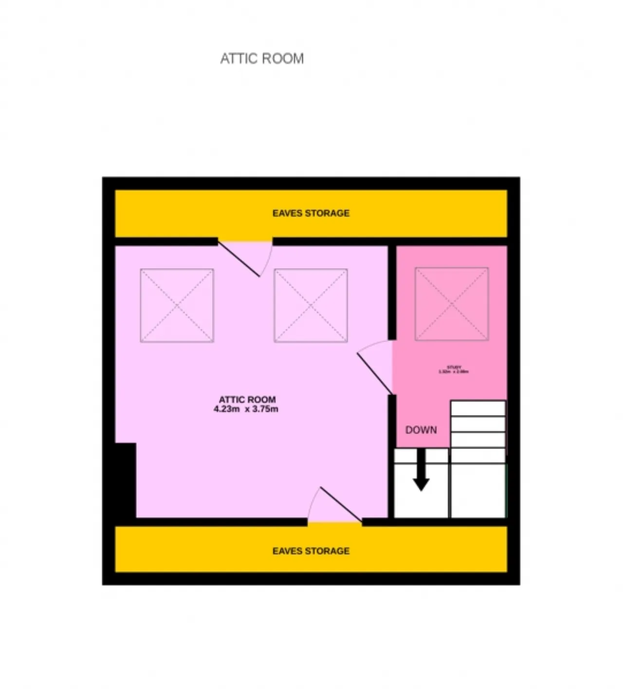 Attic Room: 4.23m x 3.75m Coming up from the landing there is a clever study area with a Velux window at the top of the stairs. A door leads through to the large attic room which has two large Velux windows that have views out over Bray towards Dublin Bay - this room has a variety of uses and has useful eaves storage.