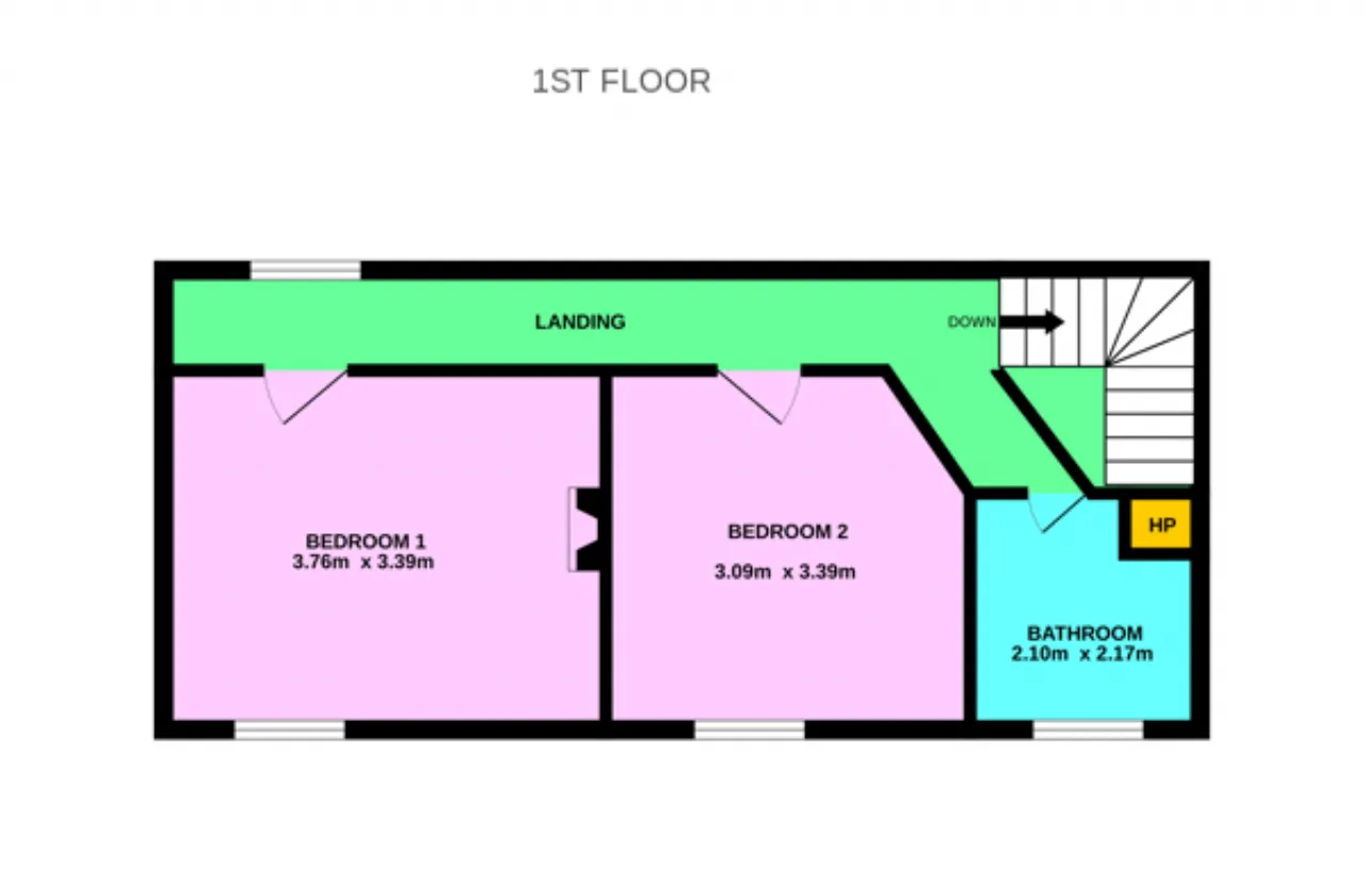 Bedroom 1 3.76m x 3.39m Double to front. Carpet flooring. Feature cast iron fireplace.