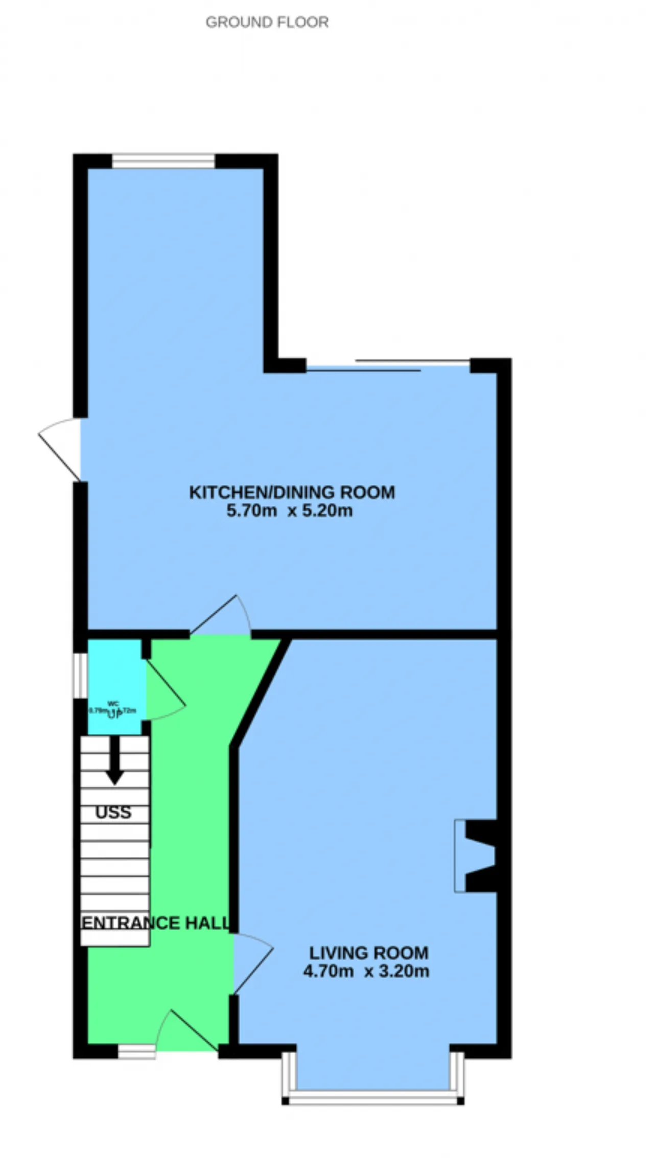 Living Room 4.70m x 3.20m Generous room to the front with bay window and feature open fireplace with cast iron surround and timber mantle. Timber flooring and central lighting.