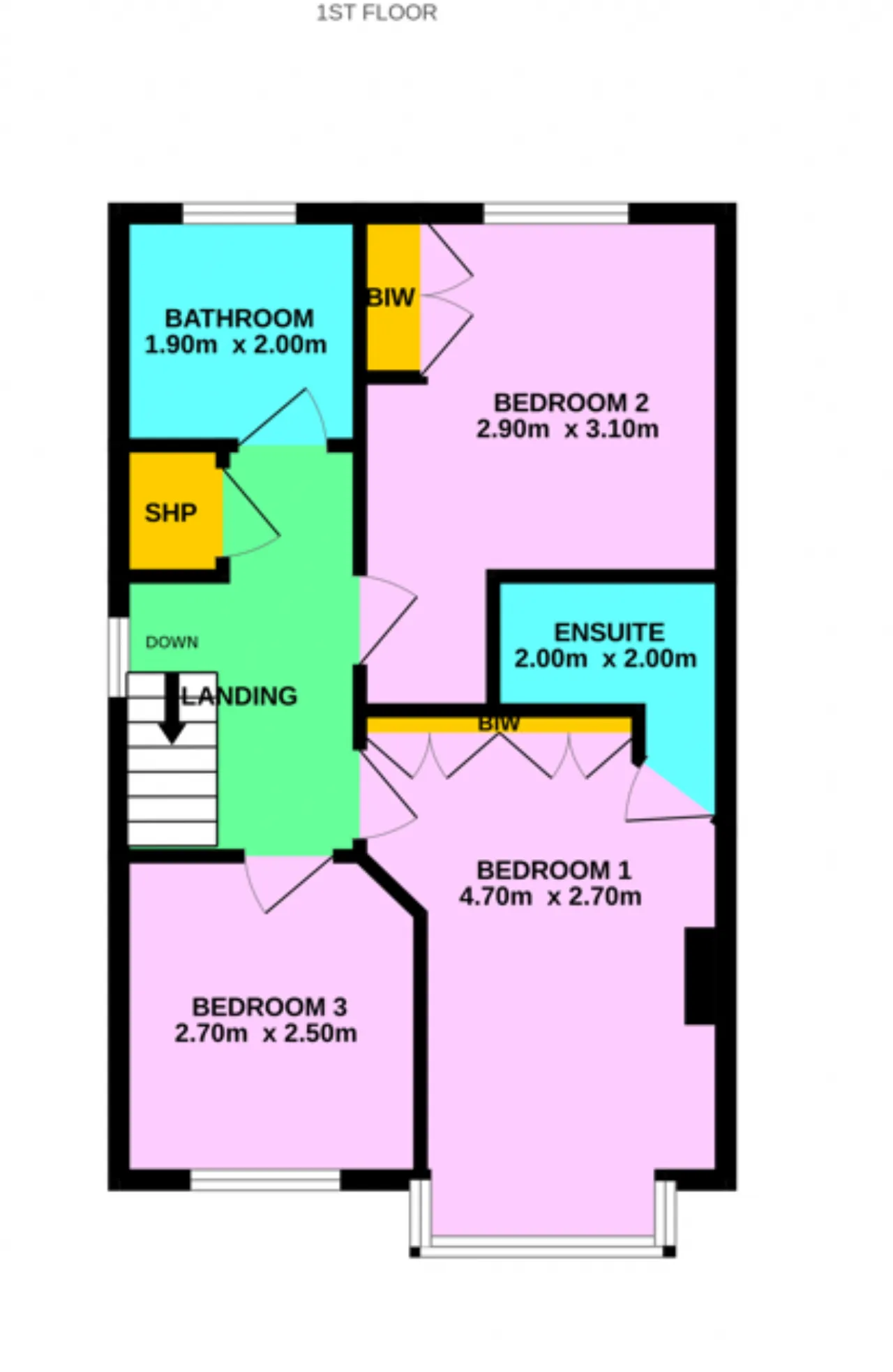 Bedroom 1 2.65m x 4.70m Double bedroom to front with floor-to-ceiling built in wardrobes. Carpeted flooring.