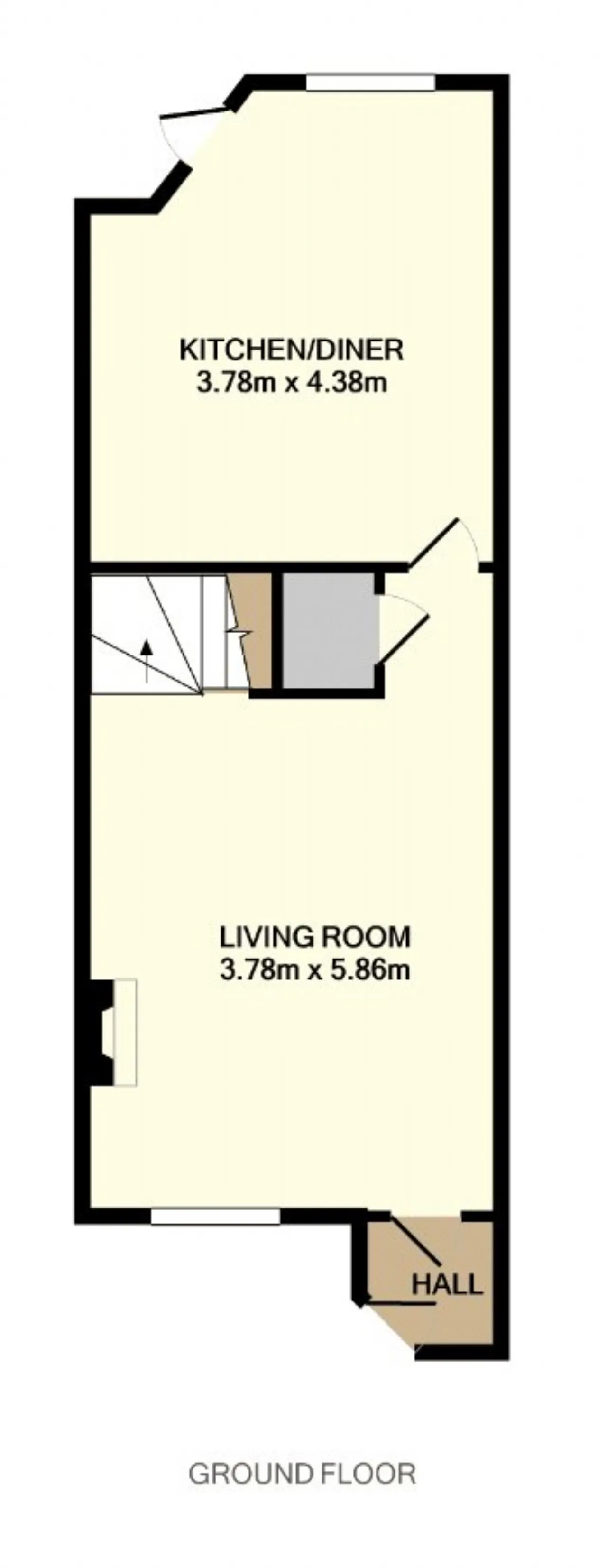 The layout is scheduled over two floors and the front of the property comprises an entrance hall and living room with a feature open fireplace, attractive ceiling coving, and laminate wood flooring which is a common theme throughout the ground floor. The kitchen/diner sits to the rear and is equipped for all appliances. There is also direct access from here to the garden. Upstairs there are two double bedrooms, both contain carpeted floors and fitted wardrobes. A contemporary fully tiled bathroom off the landing completes the floorplan.