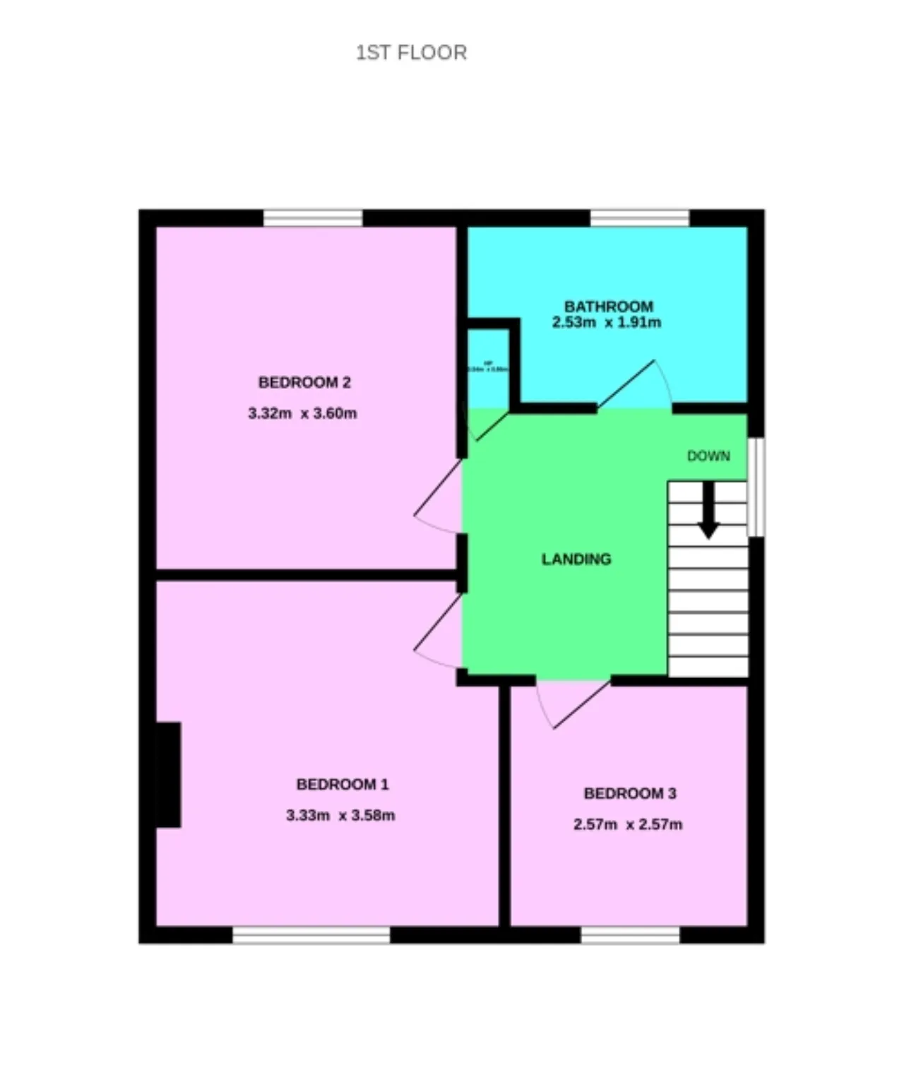 Bedroom 3 2.57m x 2.57m Single bedroom to the front. Carpeted flooring and central lighting.