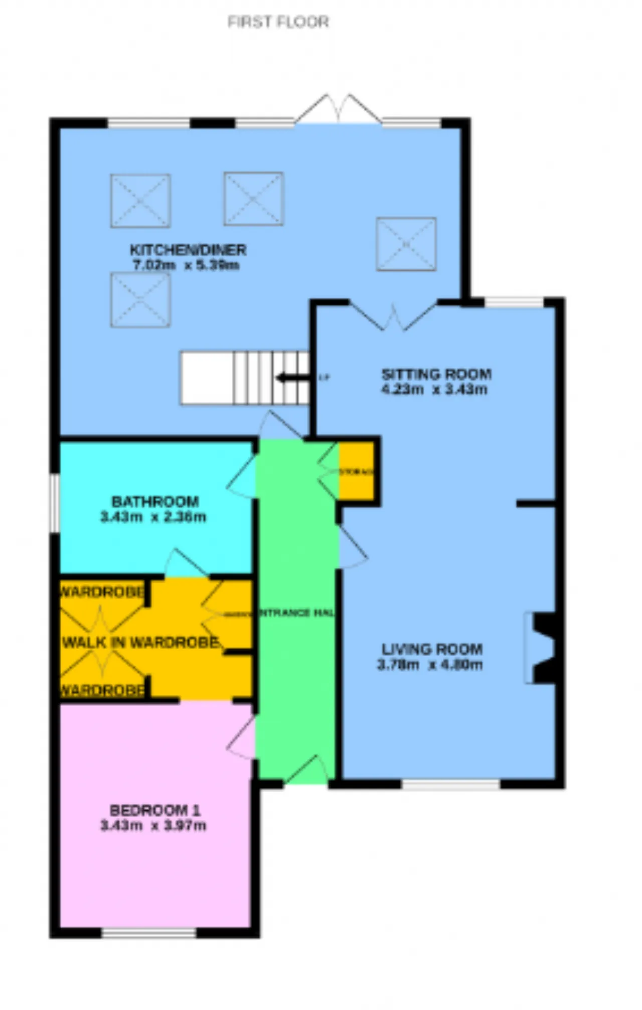 Bedroom 2 4.25m x 3.97m Dual aspect double bedroom to the front. Timber laminate flooring and central lighting