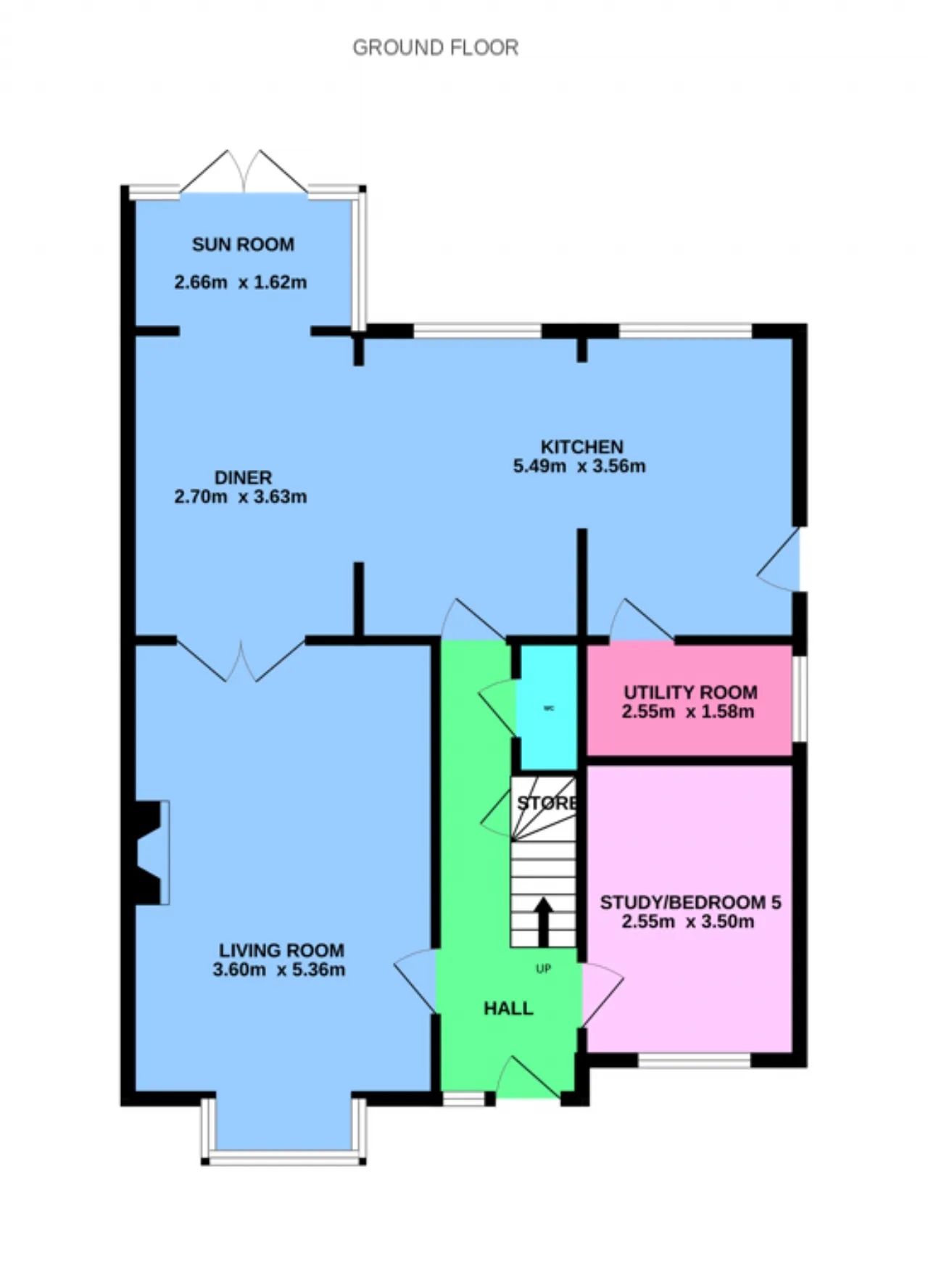 The bright and spacious accommodation which measures 150sqm/1,615sq.ft offers a good layout and versatility with nice interconnecting reception rooms and the option of a 5th bedroom/TV room or a playroom on the ground floor. Rising upstairs there are 4 bedroom (the principal bedroom is ensuite) and a family bathroom. Upon entering the house, one is met by an inviting entrance hallway with Amtico wood flooring, the staircase and a guest WC; to the right is a multi-purpose room that could be used as a TV room, a home office, a playroom or a 5th downstairs bedroom; to the left off the hall is an elegantly proportioned main living room with the same Amtico flooring, a marble fireplace and a bay window which seamlessly interconnects via double doors into the dining room, the sunroom and the kitchen. The sunroom has French doors leading out to the rear patio and garden providing for excellent indoor/outdoor living. The fully equipped shaker style kitchen comes with a gas hob & extractor fan, a double oven, a fridge/freezer, a nicely tiled floor and tiled splashback, a back door leading out to the side of the house. Off the kitchen, there is a separate utility room which provides additional cabinet space and is plumbed for a washing machine and a dryer.