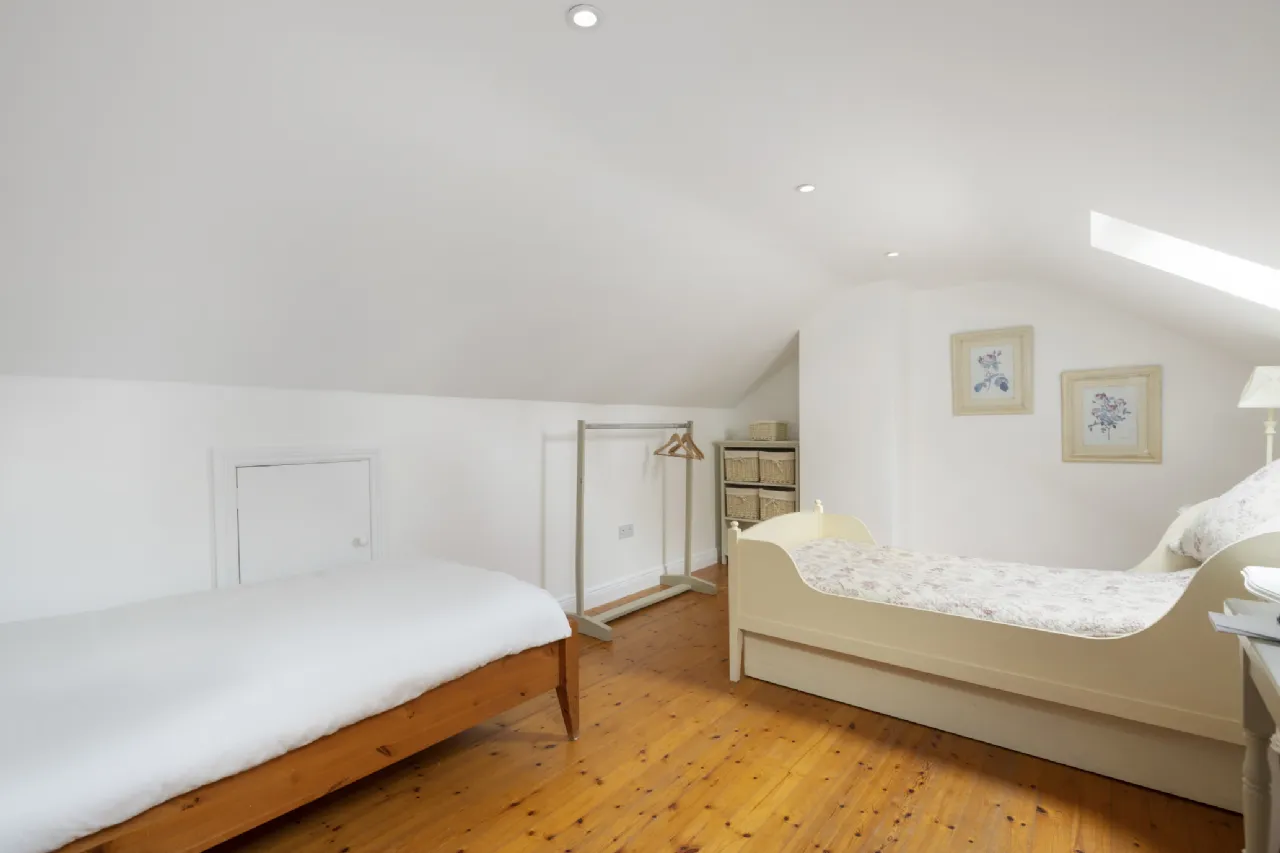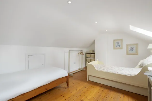The ground floor also features two well-appointed bedrooms, including a master bedroom with its own private en-suite, as well as a separate family bathroom. Upstairs, two charming attic rooms provide additional accommodation.