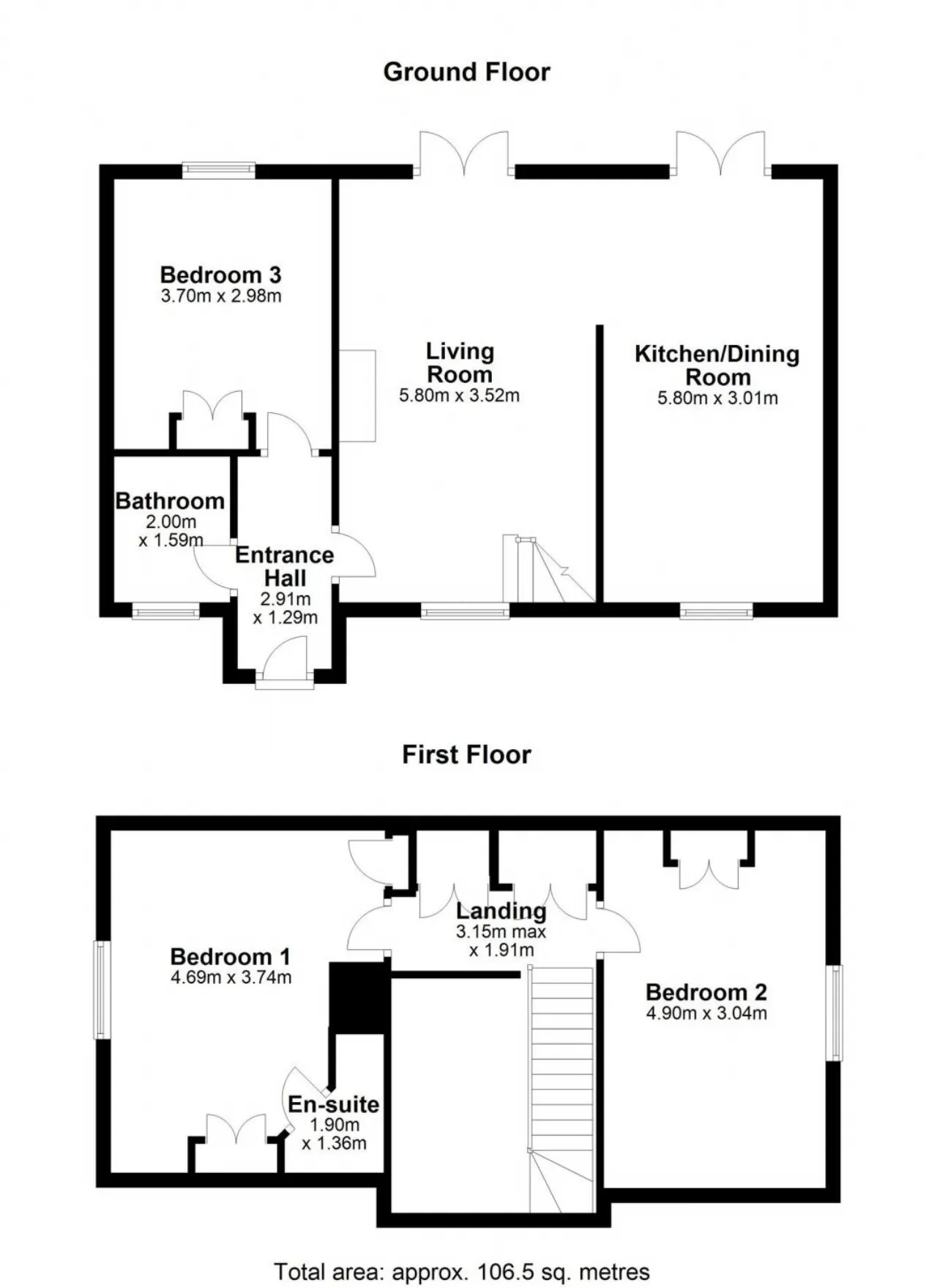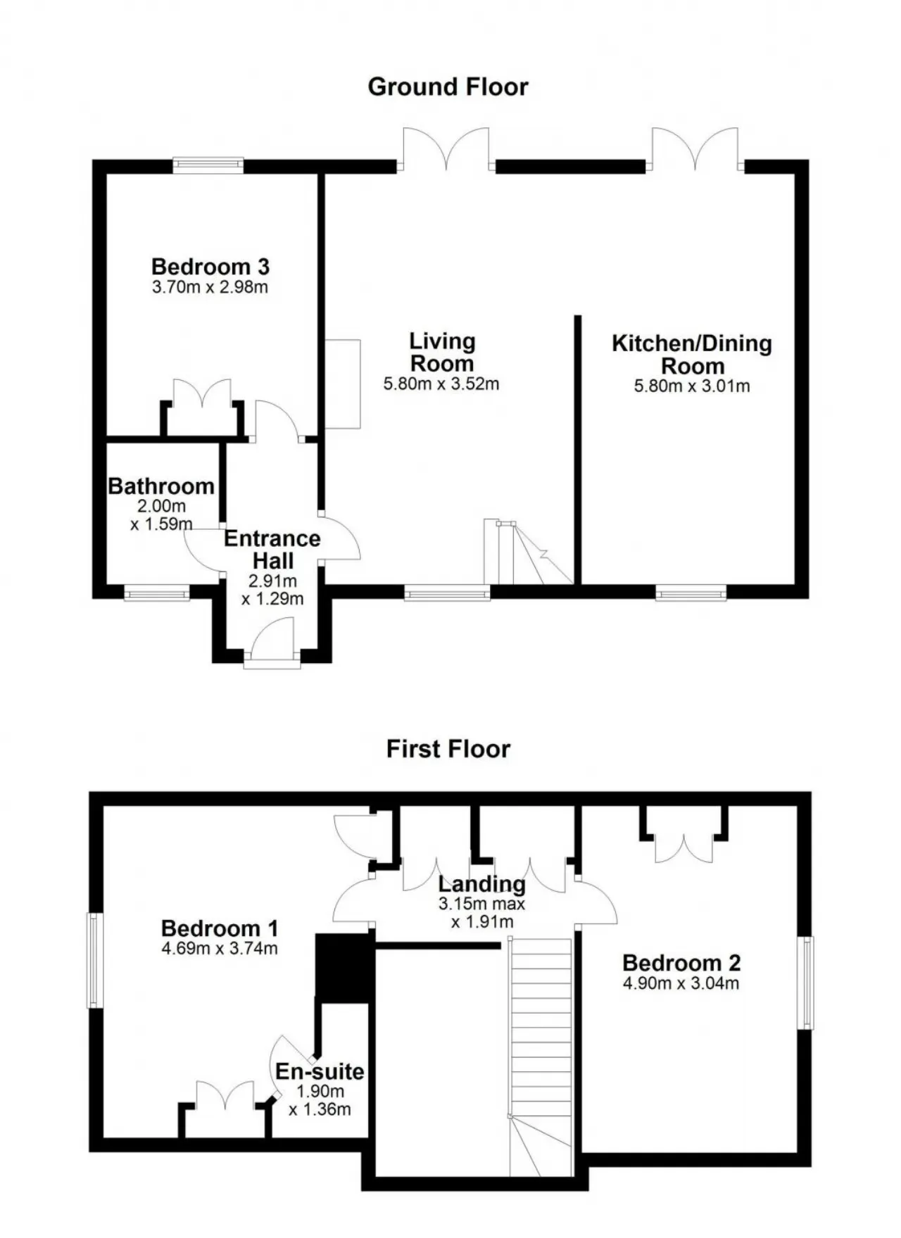 Bedroom 2 4.90m x 3.04m The second double/twin bedroom also on the first floor is fully carpeted and has a built in wardrobe.