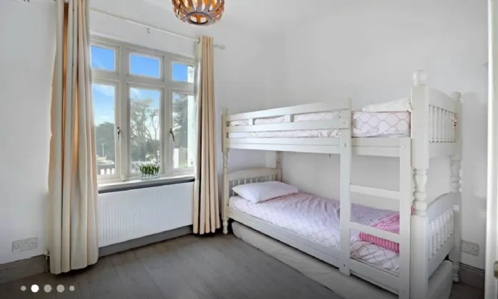 Bedroom 2 This lovely double bedroom is beautifully decorated, offering a calm and restful ambiance. Large picture windows frame stunning views, flooding the room with natural light and bringing the outside in. Timber laminate flooring adds warmth and style, while built-in wardrobes provide excellent storage without compromising space. A perfect blend of comfort and charm.