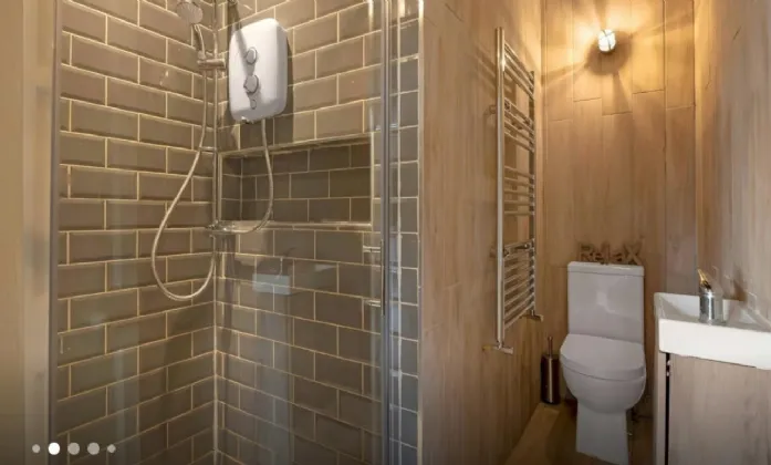 Shower room A beautifully tiled shower room with WC and wash hand basin.