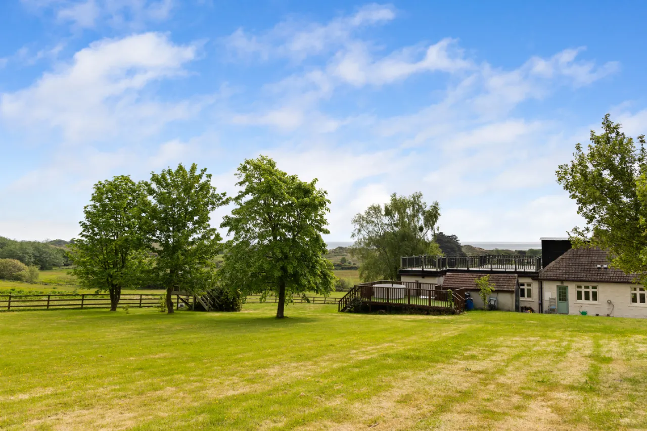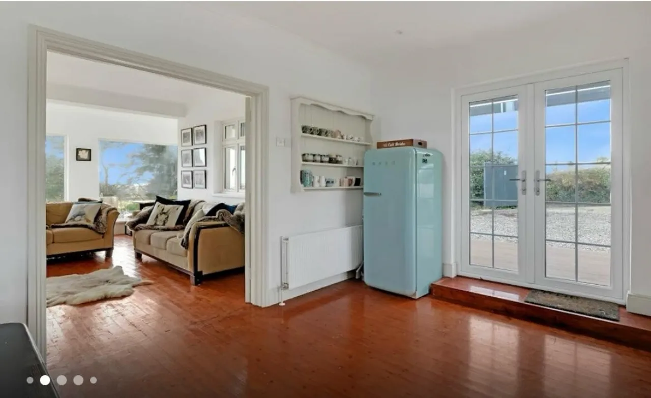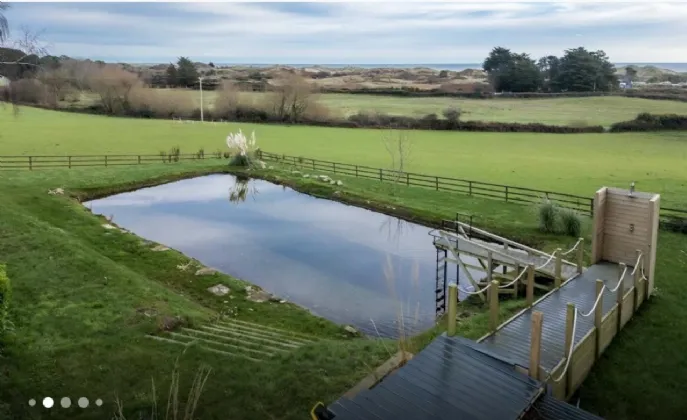 Nestled on a generous one-acre site just moments from the shoreline, this exceptional Hampton’s-style three-bedroom home offers a rare blend of coastal charm, countryside tranquillity, and modern luxury. Thoughtfully extended and beautifully presented, this residence captures breathtaking sea views stretching across Brittas Bay and the surrounding landscape.