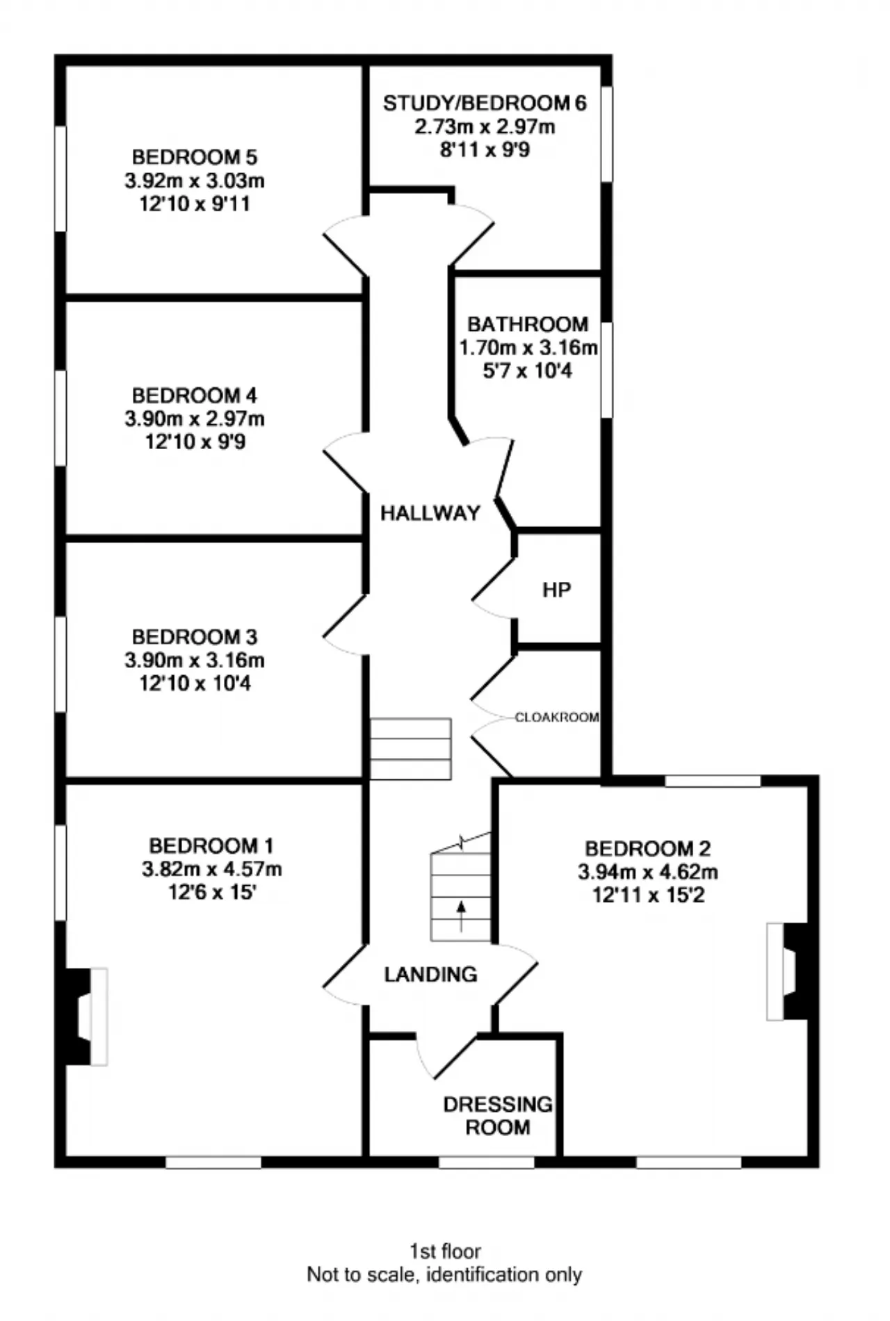 The interconnecting sitting room, dining room and eat in kitchen are ideal for entertaining and there is a separate living room with a snug fireplace just off the hall. Upstairs, a split level gallery landing opens onto five bedrooms, four of them with south/easterly orientation, a dressing room and a study/6th bedroom.
