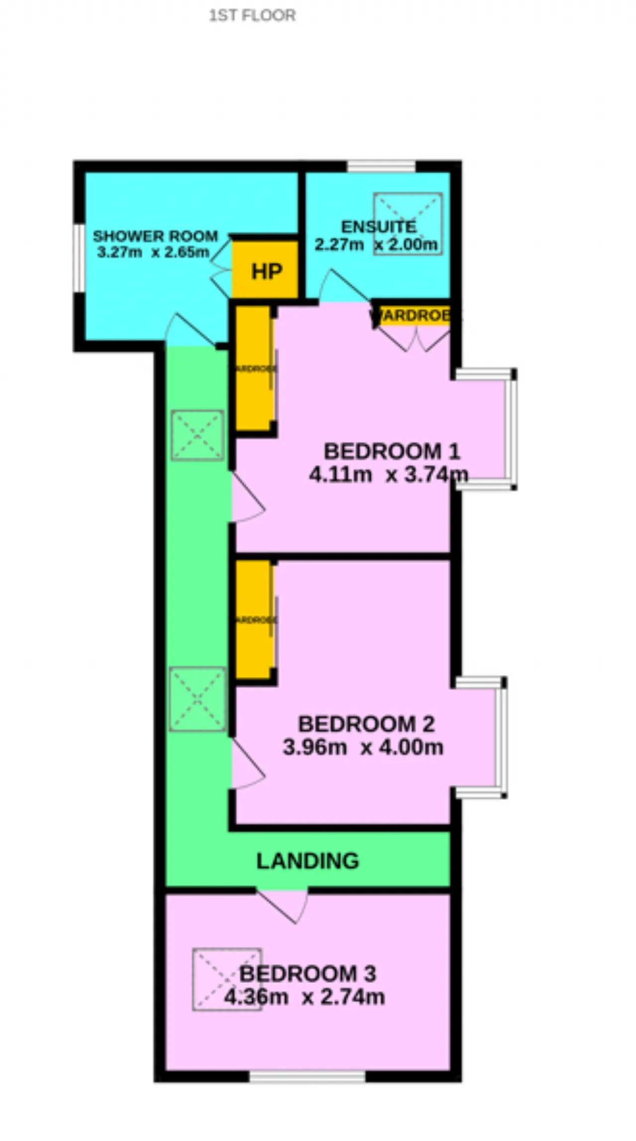 Bedroom 3 4.36m x 2.74m Double bedroom to front with dual aspect. Velux window. Under eaves storage. Timber laminate flooring and recess lighting.
