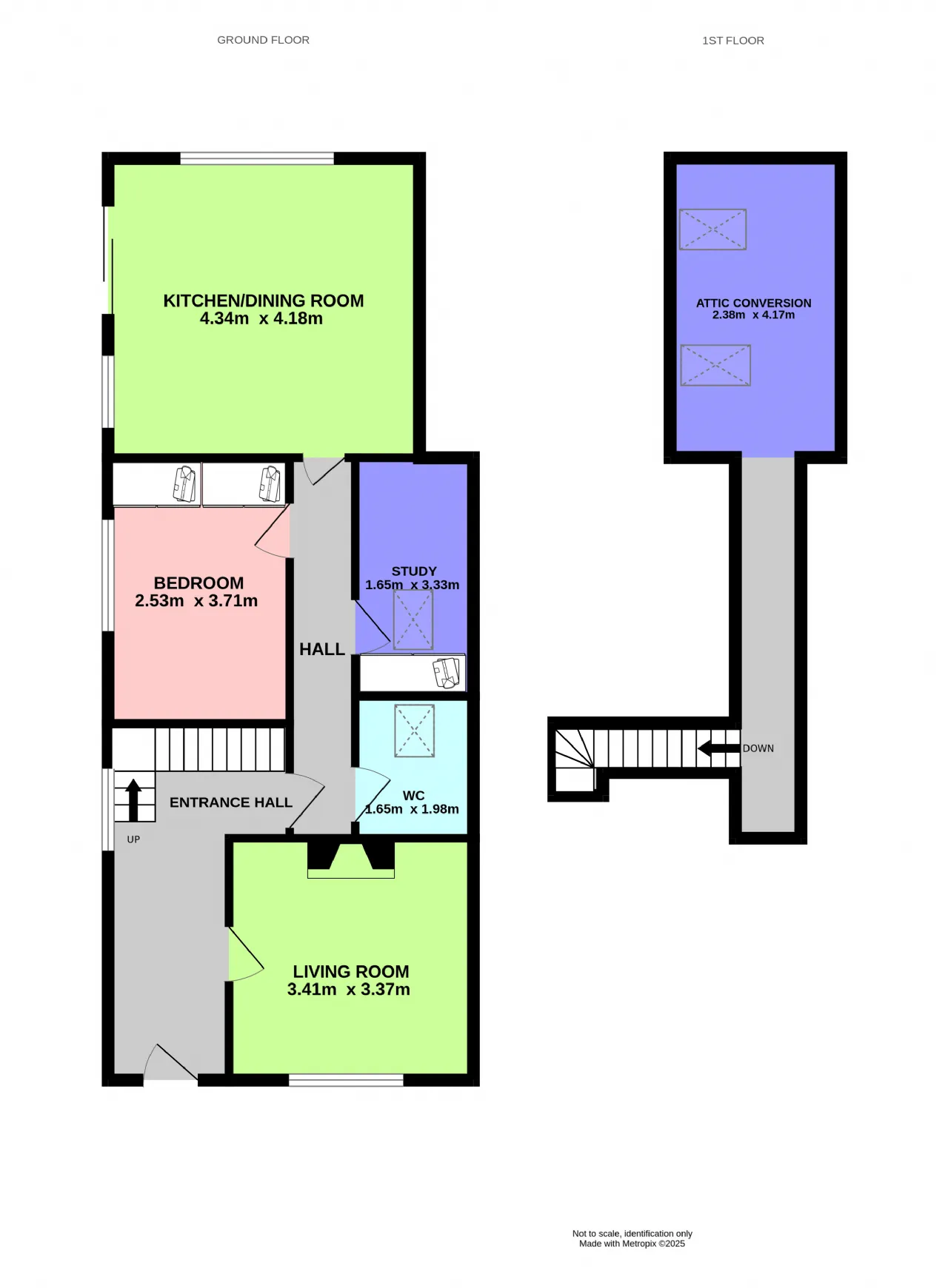 Sitting Room / Bedroom 2 3.41m x 3.37m A charming and cosy room overlooking the front garden with bespoke wooden blinds protecting privacy. Open fireplace with marble inset & hearth with wooden mantle and built in alcove shelving. TV point.