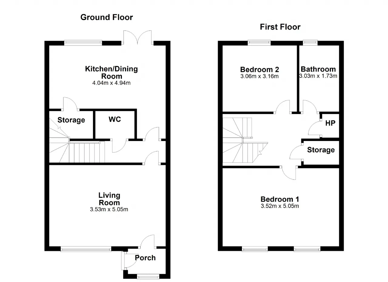 Bedroom 2 3.03m x 1.75m Rear facing double bedroom with floor to ceiling built in wardrobes and a cream wool carpet.