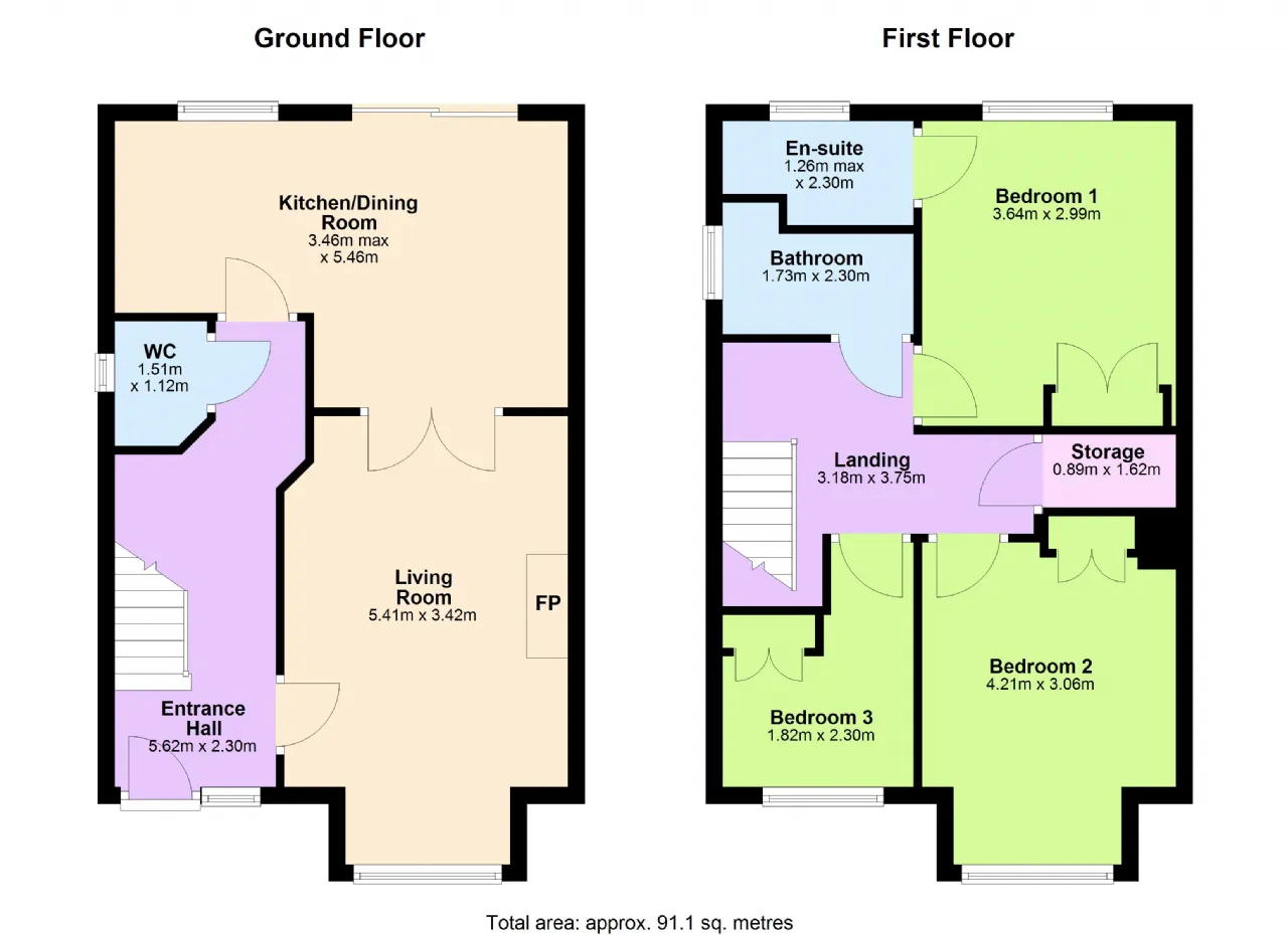 Bedroom 3 2.30m x 1.82m Located to the front of the property and featuring carpet flooring and fitted wardrobe.