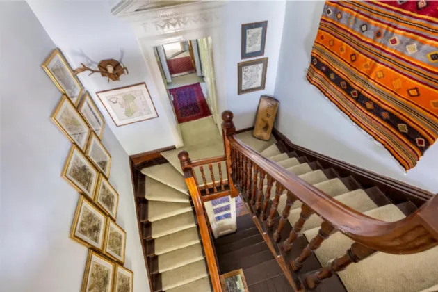 The upstairs landing is another highlight, leading to a charming balcony that offers sweeping views of the meticulously landscaped garden, a peaceful spot to take in the natural beauty of the estate. The property also benefits from a considerably large attic space, offering excellent potential for further development. Currently laid out in three rooms (Room 1: 5.62m x 3.7m, Room 2: 3.84m x 3.66m, and Room 3 containing the water tanks), the attic is easily accessed via a separate staircase and could be converted to provide two additional bedrooms, a home office, or further living accommodation, subject to planning permission