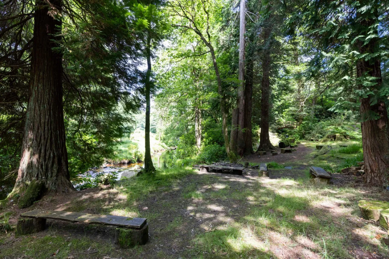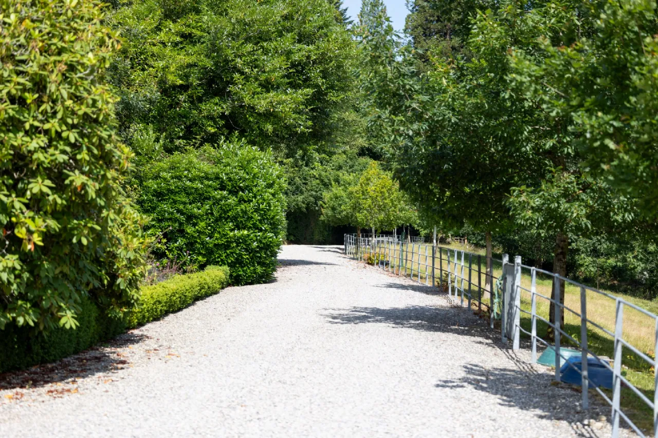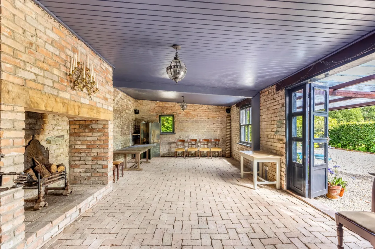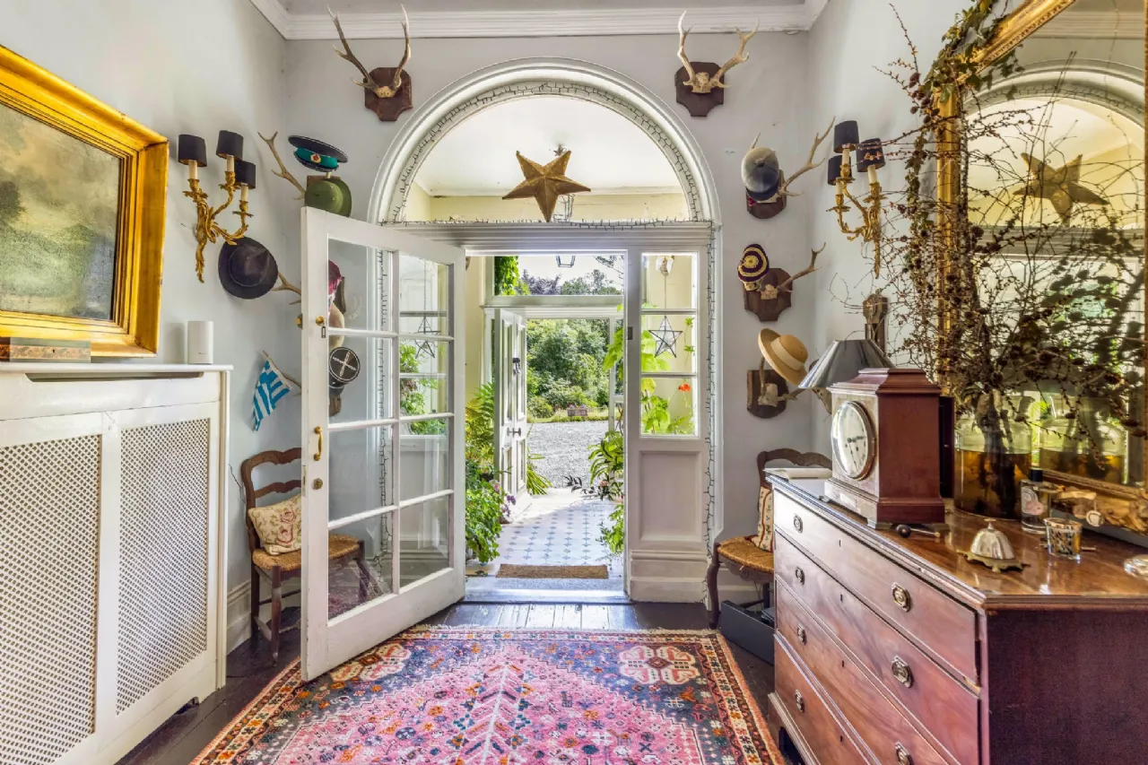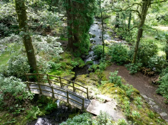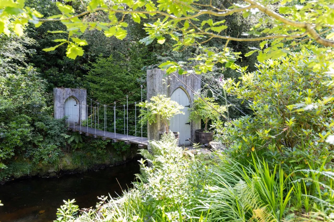 From the historic tennis lawn shaded by ancient trees to the enchanting water garden with its natural pond teeming with wildlife, the gardens are a celebration of both history and nature. The beautifully restored stables provide a versatile indoor space, perfect for hosting events such as weddings, workshops, and private gatherings. The flower garden, with over 140 years of horticultural design, is home to vibrant herbaceous borders, a rose garden framed by mature beech hedging, and sweeping lawns that surround the house. The is a stunning circular outdoor swimming pool in a peaceful forest setting along with a long established wild and safe swimming area in the river. Mature Deciduous woodland with specimen trees include Sequoias, Irish Oak , Beech and Cooper Beach , Monkey Puzzle, Scots Pine, and Irish Champion Lawson Cypress.