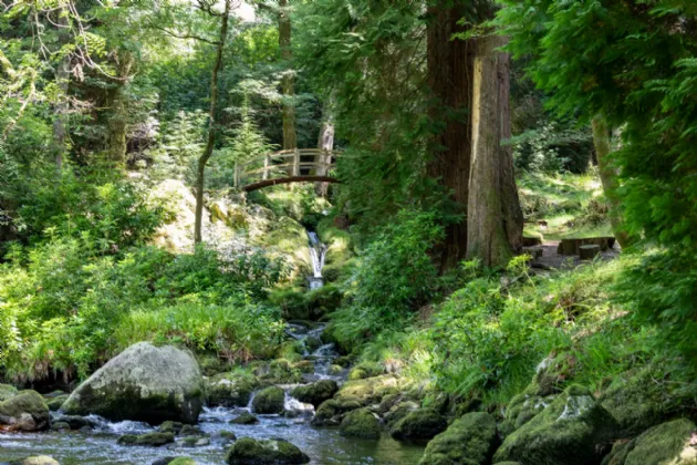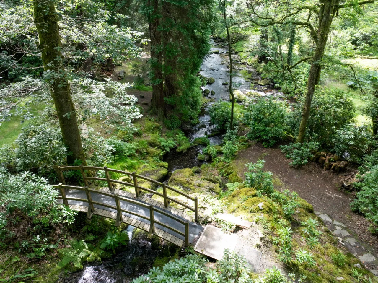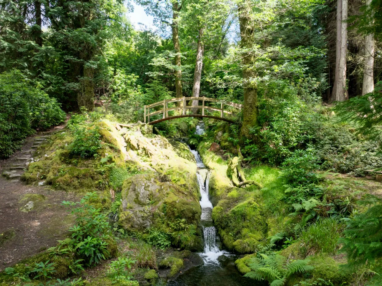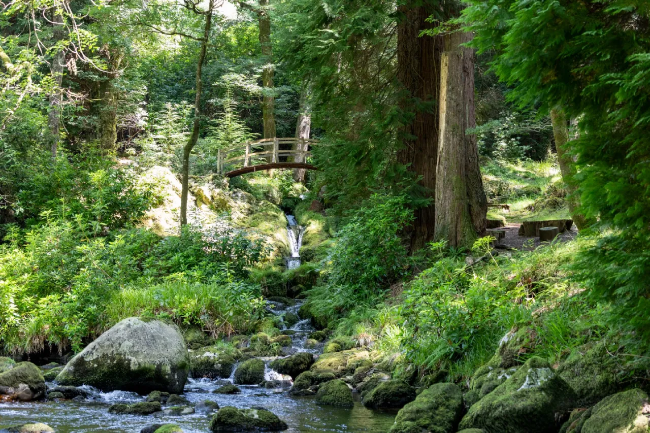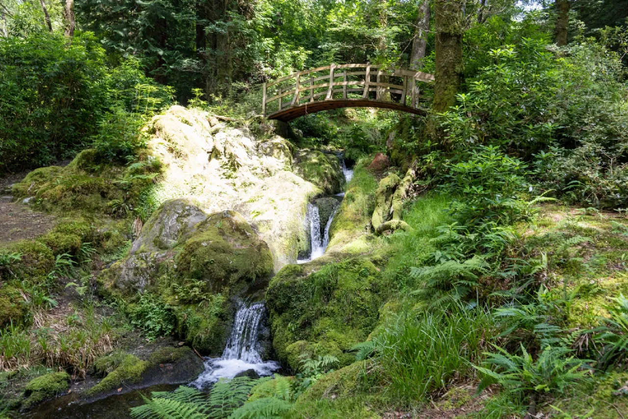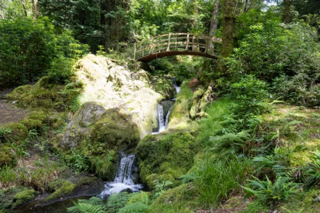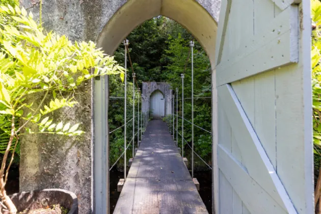 Beyond the river garden, a suspension bridge leads to a magical forest path that winds through lush greenery to a spectacular waterfall, a Japanese bridge, and a serene Himalayan-inspired garden filled with ancient ferns and moss-covered cliffs. Together, the gardens and grounds offer an unparalleled blend of tranquility, beauty, and history, creating an idyllic setting that complements the elegance of the lodge itself.