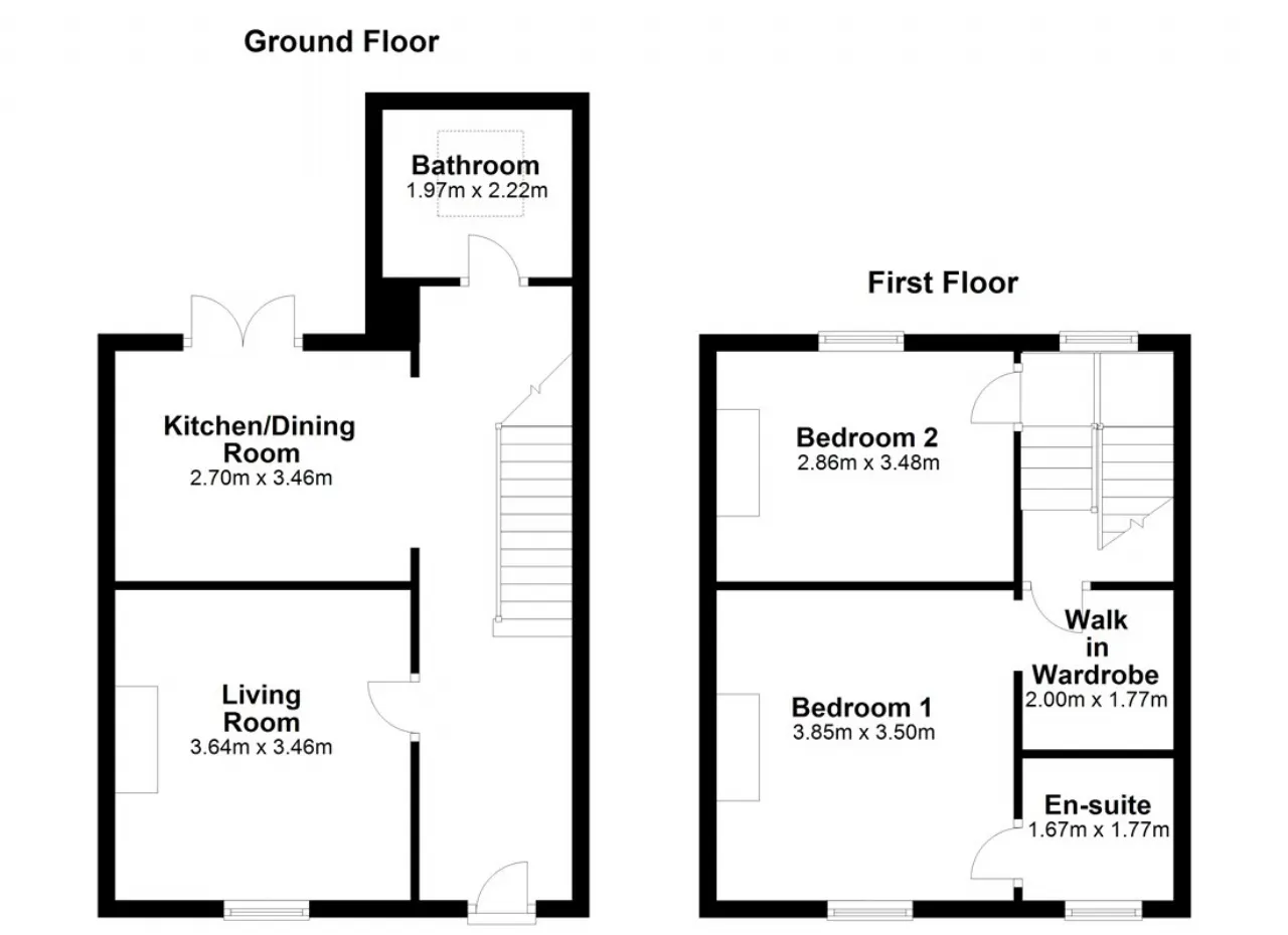 Bedroom 1 3.85m x 3.50m (2m x 1.77m dressing area) With original timber floors, dressing area with fitted wardrobes, original fireplace with stove inset, original shutters on windows