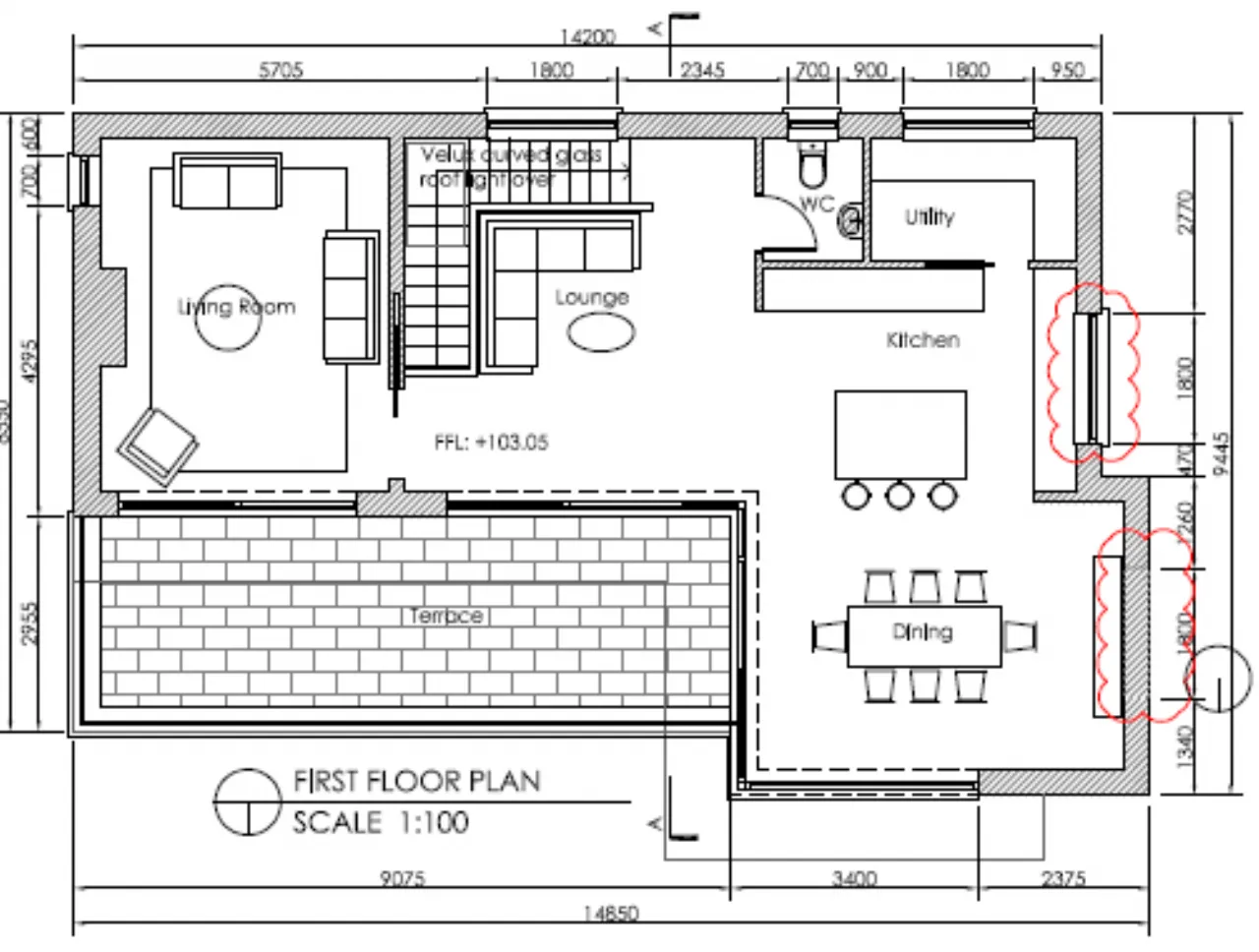 Designed by well known local architect Richard Rainey, the planning consists of a 188 sq.m/ 2,030 sq. ft 2 storey residence. On ground floor level, the plans consist of a large entrance hall, Master bedroom with ensuite and walk in wardrobe, two large double bedrooms, one with ensuite, a home office and family bathroom. On first floor level, plans include a large open plan Kitchen/ Dining/ Lounge area, a living room and a utility room all with access to a large terrace. Thoughtfully designed and carefully laid out, all the rooms in the house were purposely designed to face the water, each with large windows to take in the vista as well as flooding the house with natural light. Planning reference 21/04554.