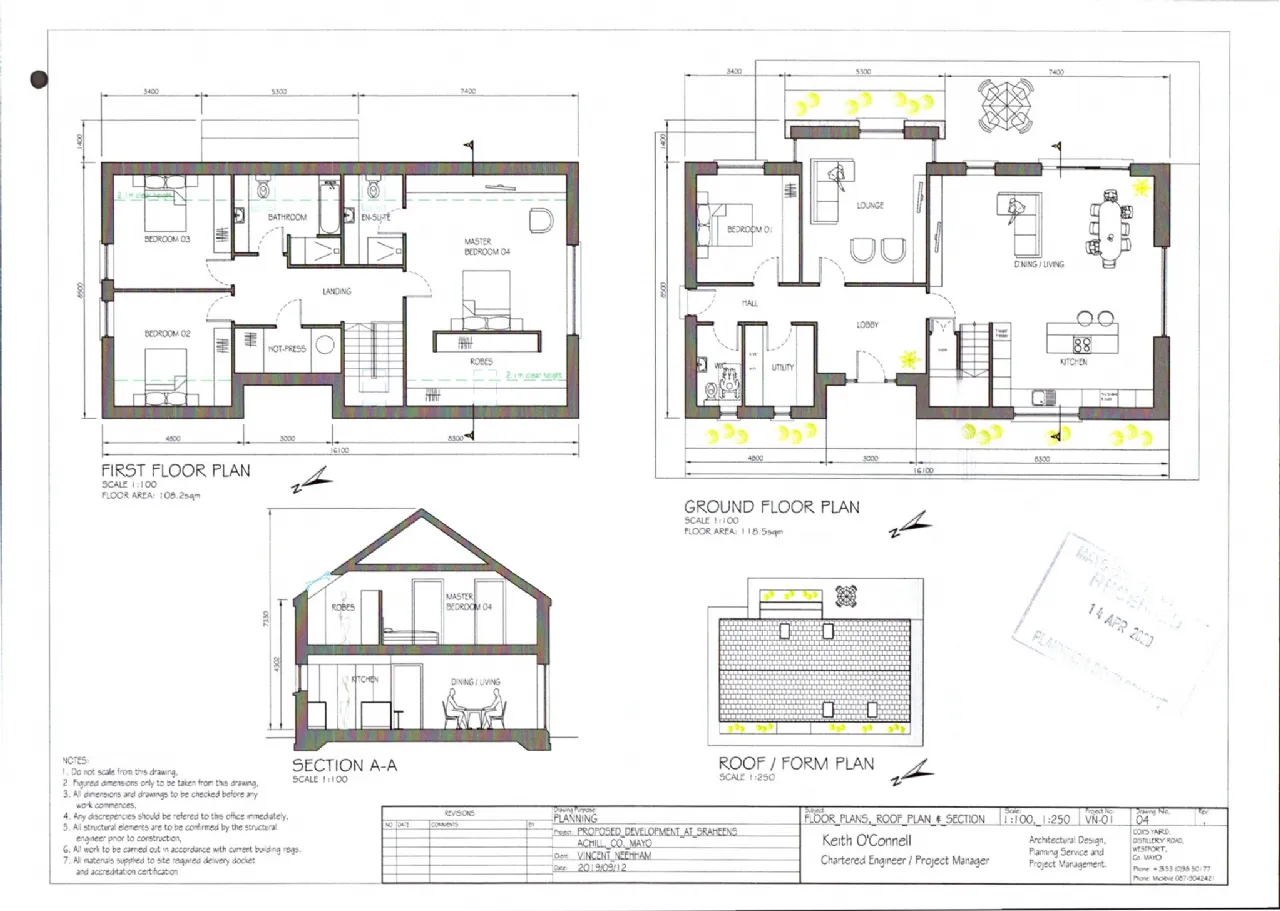 Planning consent is for a very spacious 4 bedroom dormer type residence comprising 216 square metres ( 2,325 square foot) plus a detached garage with mezzaine floor.