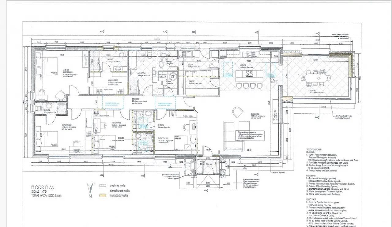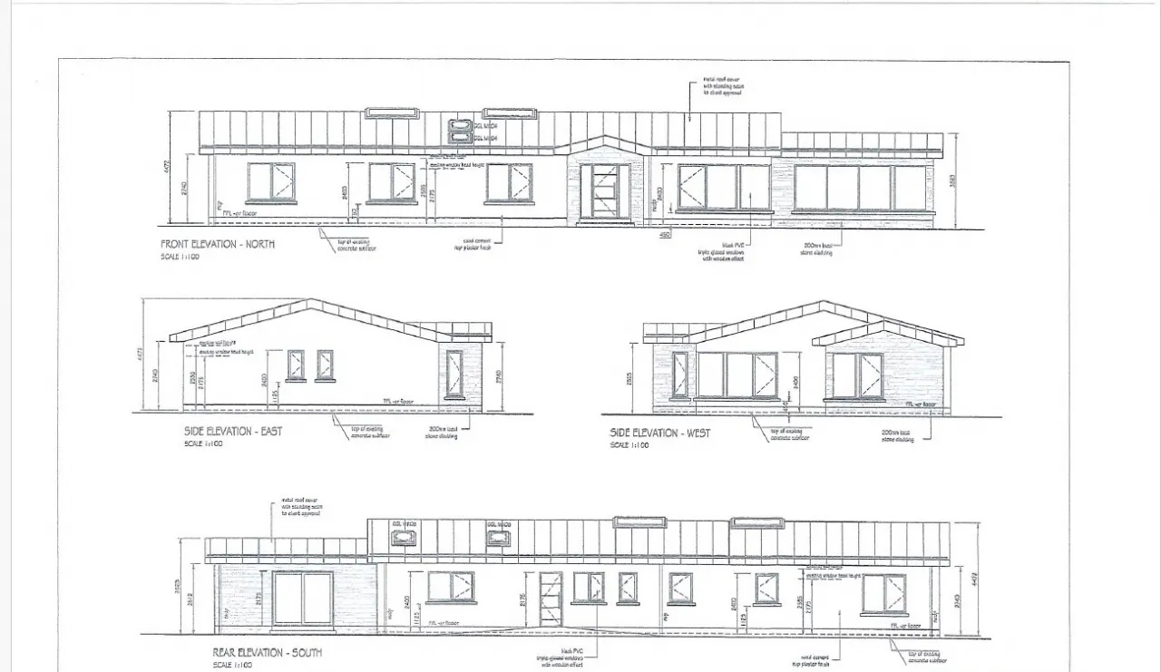 Proposed accommodation will consist of an entrance porch and lobby, large open plan kitchen/living area, dining room/sunroom, utility room, pantry, wc, four bedrooms (all en-suite) and a family bathroom. The very spacious floor area extends to approximately 222.6 sq. m/ 2396.05 sq. ft.
