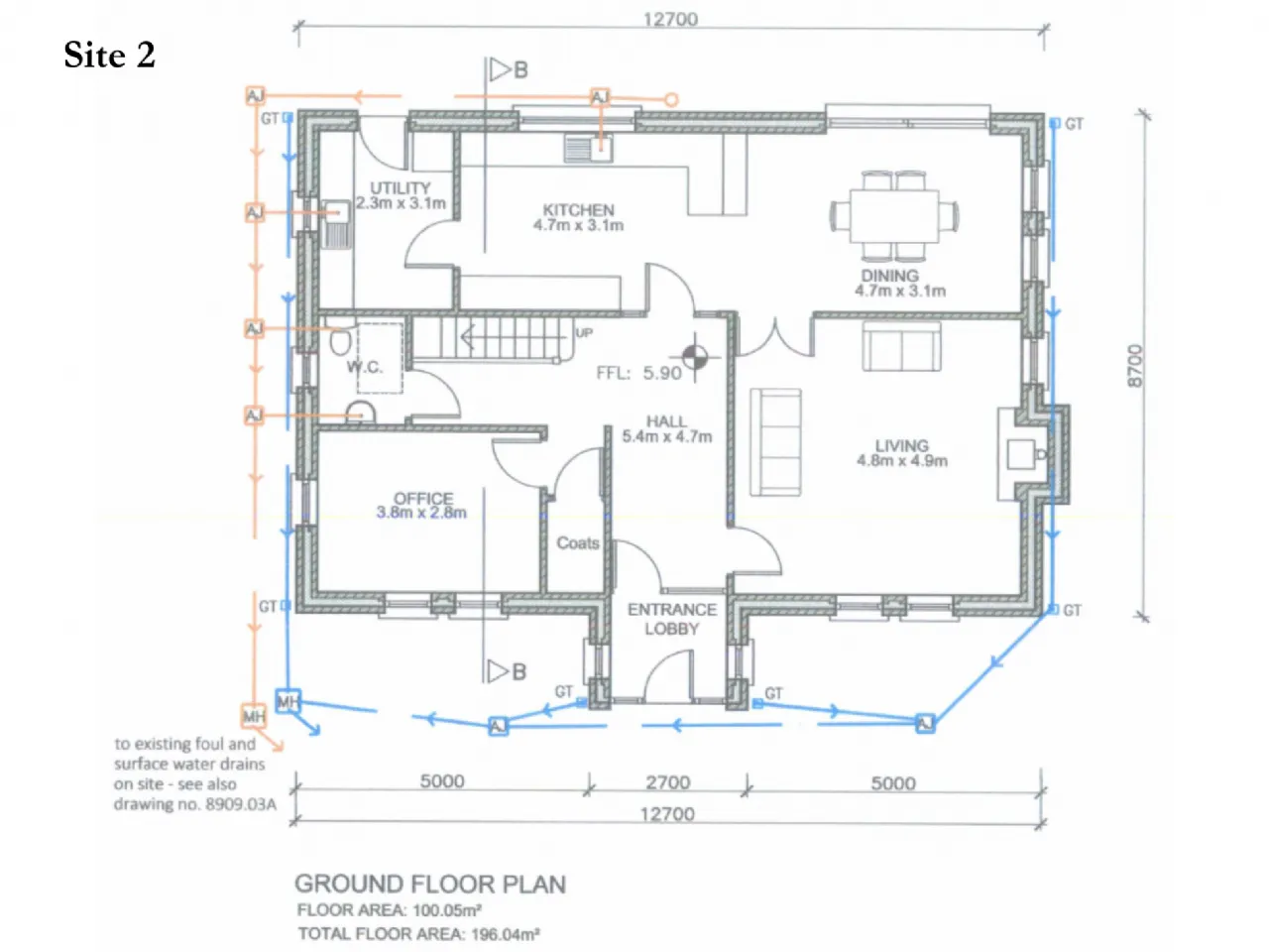 Planning is for a 2-storey detached residence measuring at 196.04 sq. m with detached garage measuring at 32.64. Accommodation will comprise of: entrance lobby, hallway, living room, large openplan kitchen/dining area, separate utility room, WC, coat room and office space on the ground floor. The first floor will hold master bedroom with en-suite, three additional bedrooms (two of which are doubles), office and main bathroom.