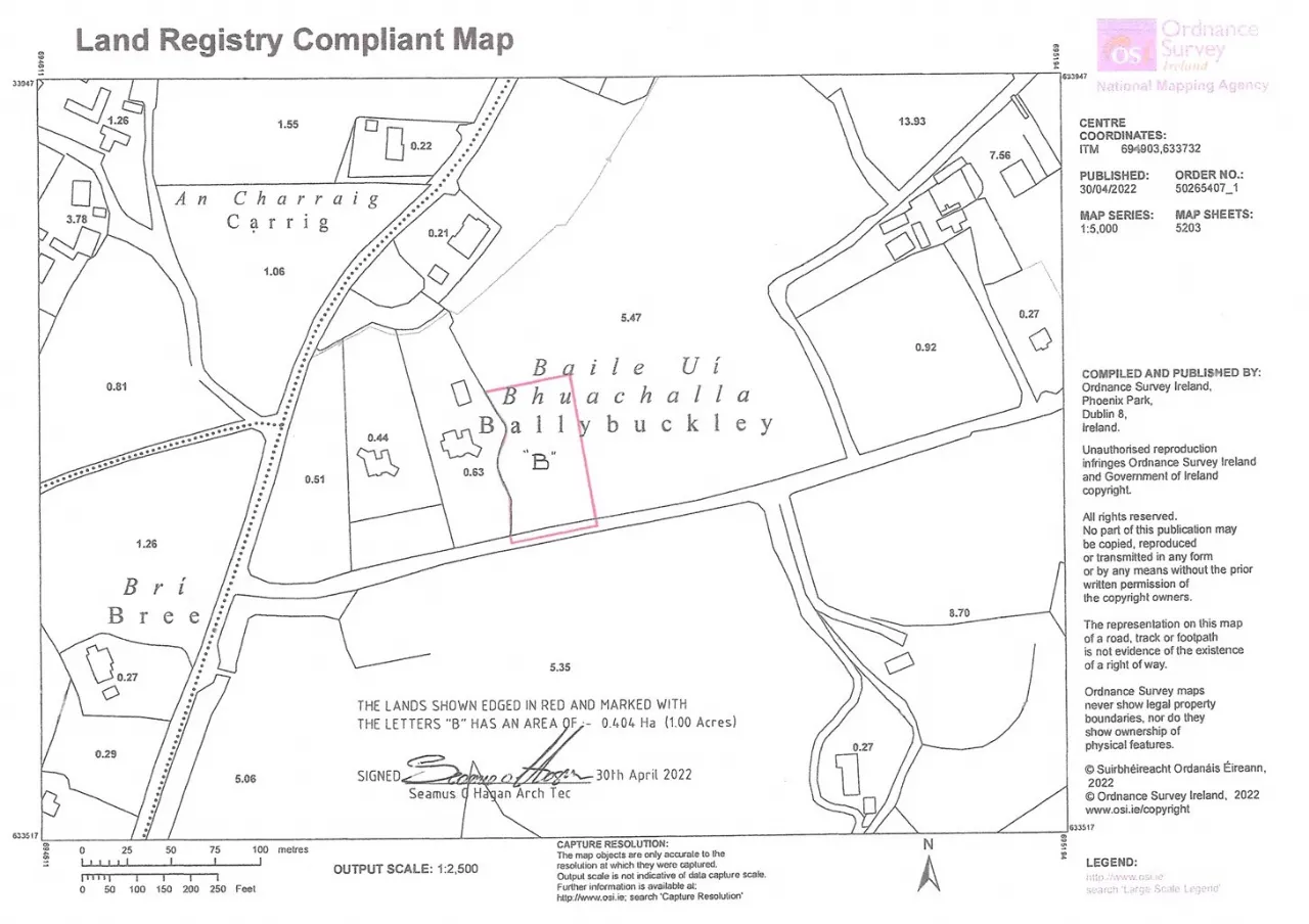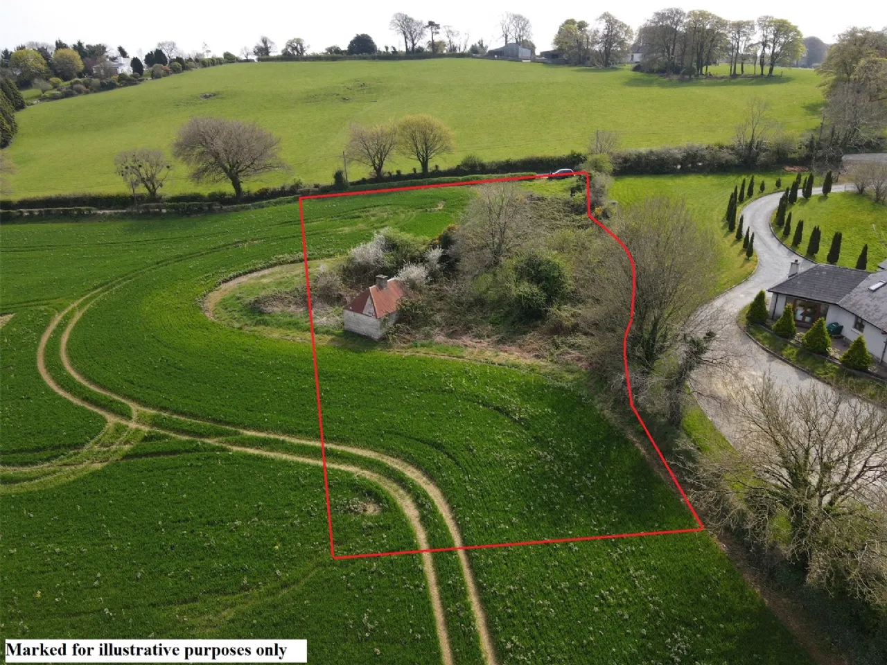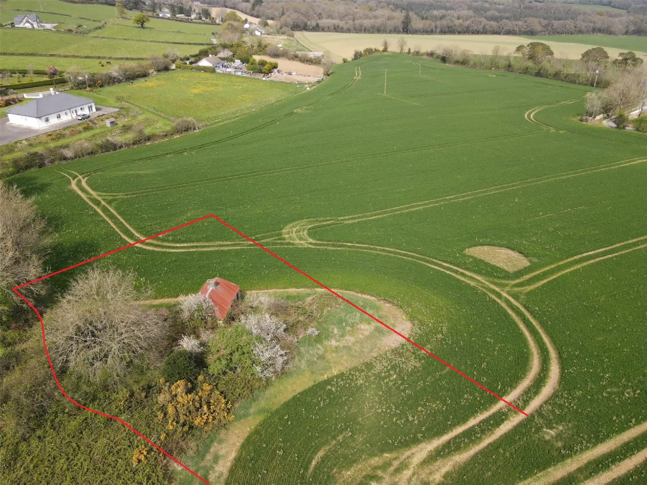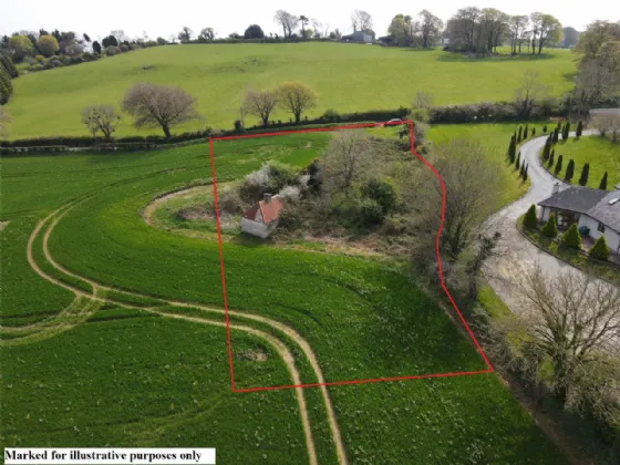 Very scenic 1 acre site (0.404 ha) approx. with derelict cottage situated less than 10 minutes’ drive from Enniscorthy town and approx. 5kms from the end of the M11 motorway
