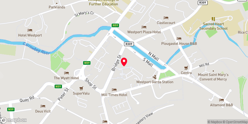 Westport is a town in County Mayo, situated at the south-east corner of Clew Bay, an inlet of the Atlantic Ocean. It is a popular tourist destination, and scores highly for Quality of Life. It has also won the prestigious Irish Tidy Towns Competition three times; in 2001, 2006 and 2008. In 2012 it won the Best Place to Live in Ireland competition run by The Irish Times. This highlights the strong community values in the area.
