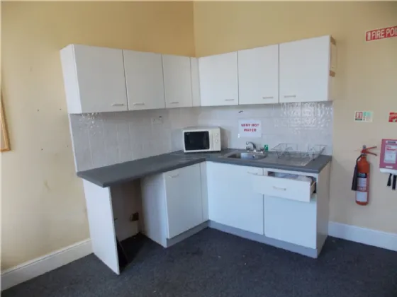 Formerly occupied by NIB, the offices are finished to a high standard with suspended or high plastered ceilings, carpets and storage heating. There is a large fitted kitchen that could offer additional office space with some reconfiguration. There are separate ladies and gents toilets. Occupying a corner site, the offices are generally bright with lots of natural light. A separate entrance hall on O'Connell Square gives access to the offices.