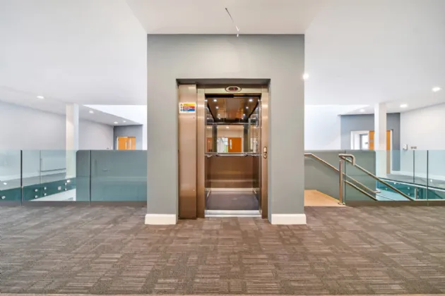 - First floor accommodation enjoys feature glazed walls with elevated views of surrounding area