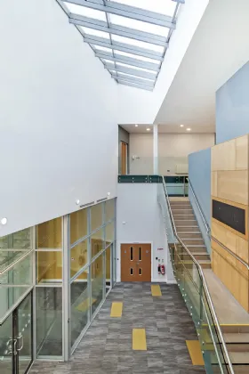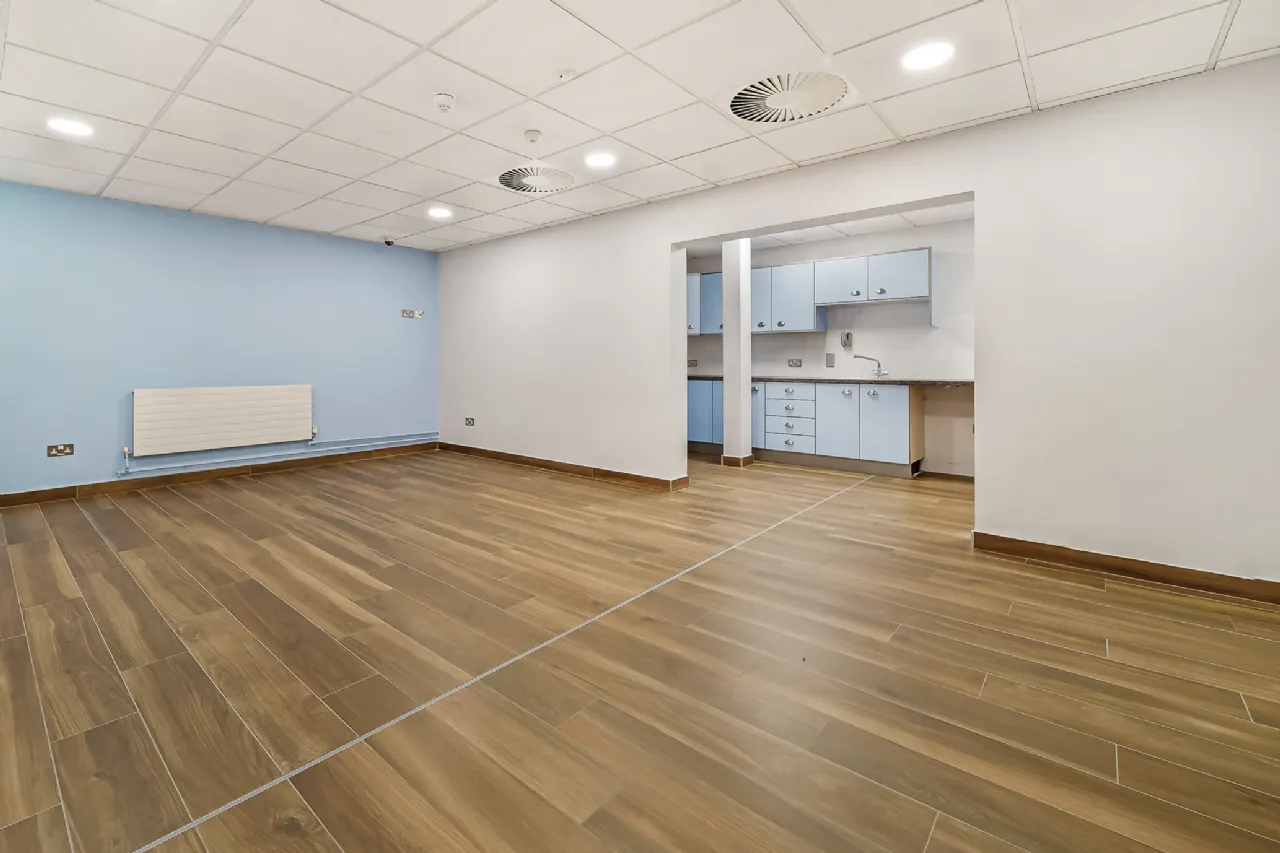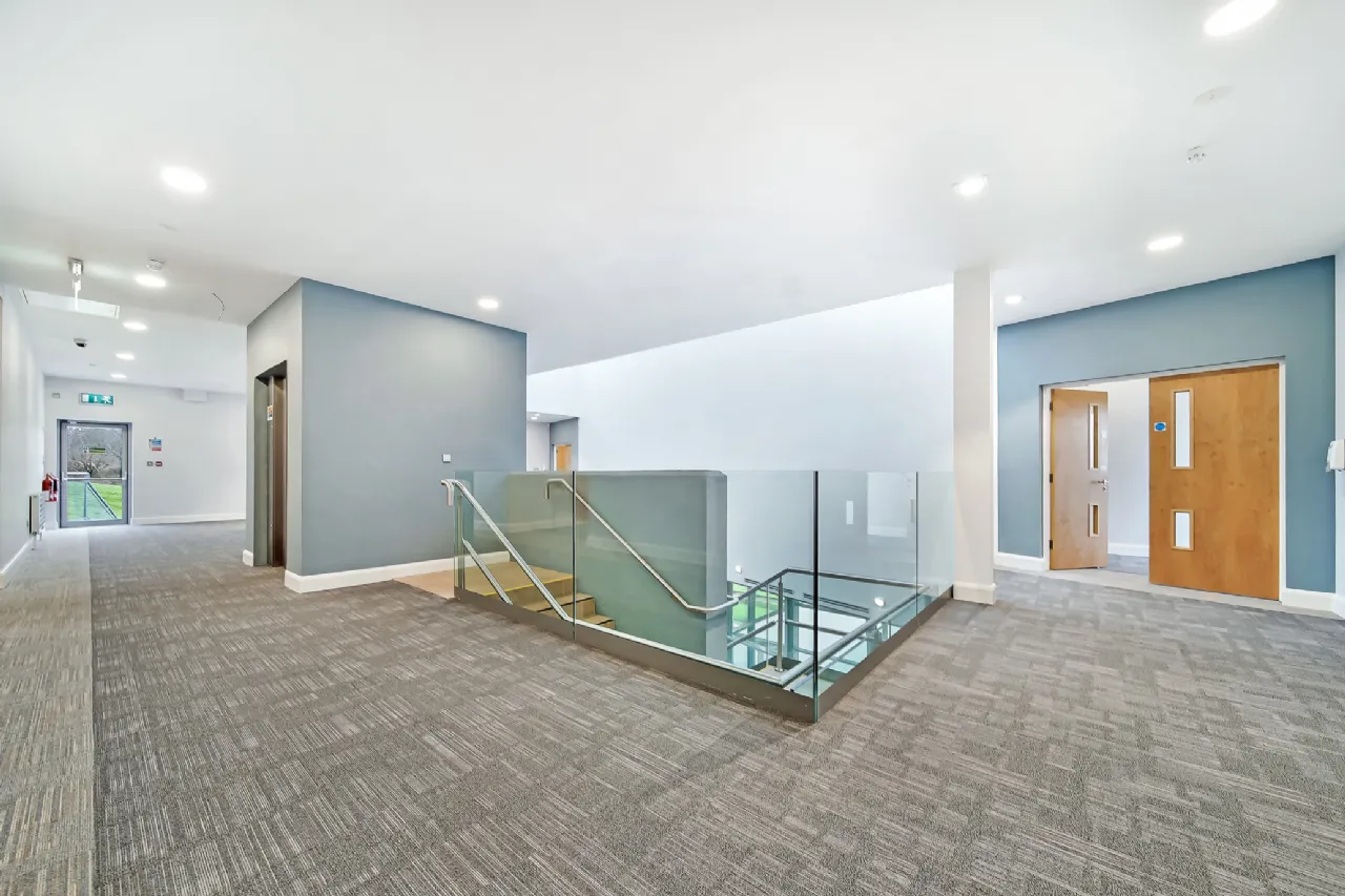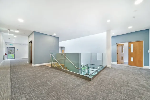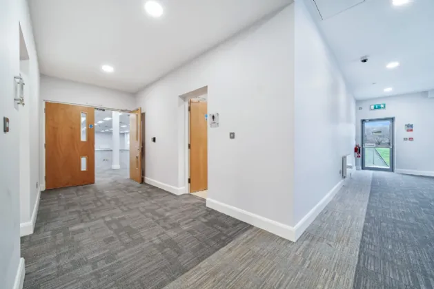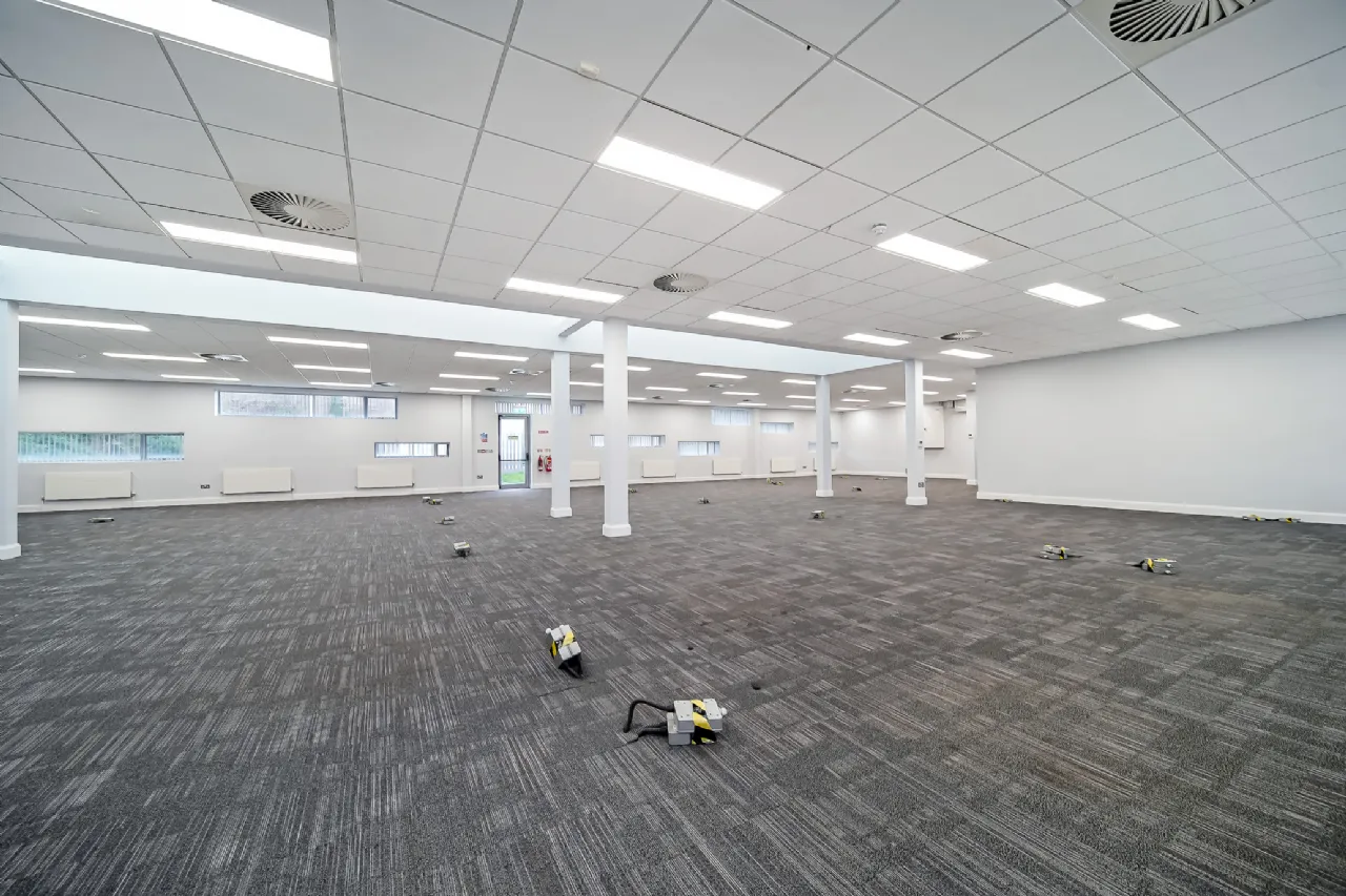 This modern open plan accommodation comprises multiple open plan meeting rooms, board rooms, office accommodation and staff kitchen/canteen area.