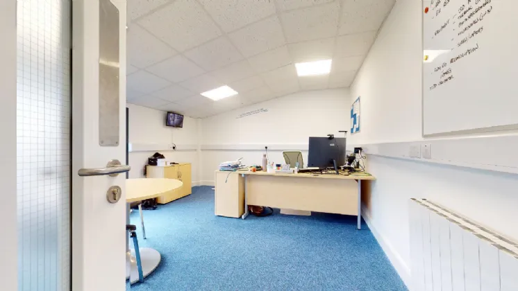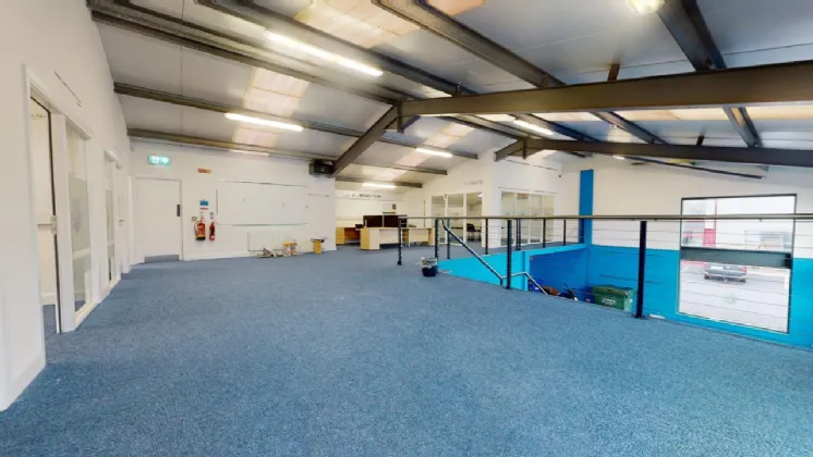 The unit is laid out over two floors, the ground floor extends to 2,770 square feet and the mezzaine first floor extends to 2,186 square feet with an abundance of natural daylight available throught the entire building making it a most appealing workspace.
